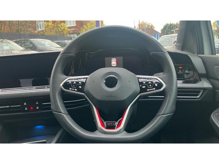 The GTI trim enhances the Golf's sporty character with its bold styling, red accents, and refined interior. Its 5-door hatchback design provides easy access and generous space for passengers and luggage. Inside, you'll find advanced technology including a digital cockpit, touchscreen infotainment system, Bluetooth connectivity, and a range of intuitive driver-assistance features.