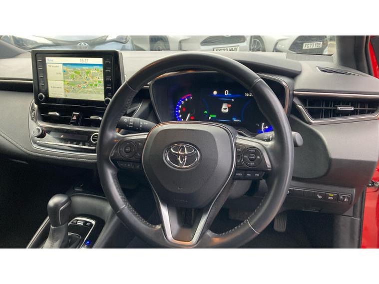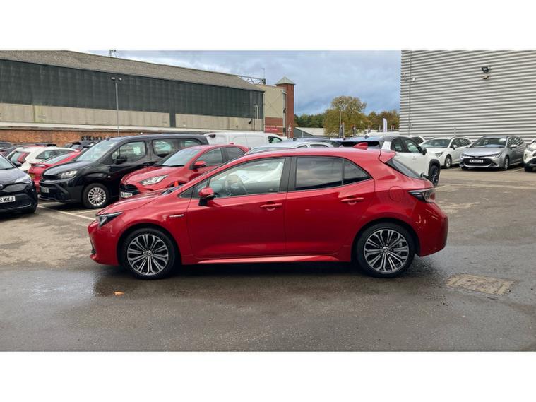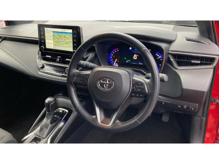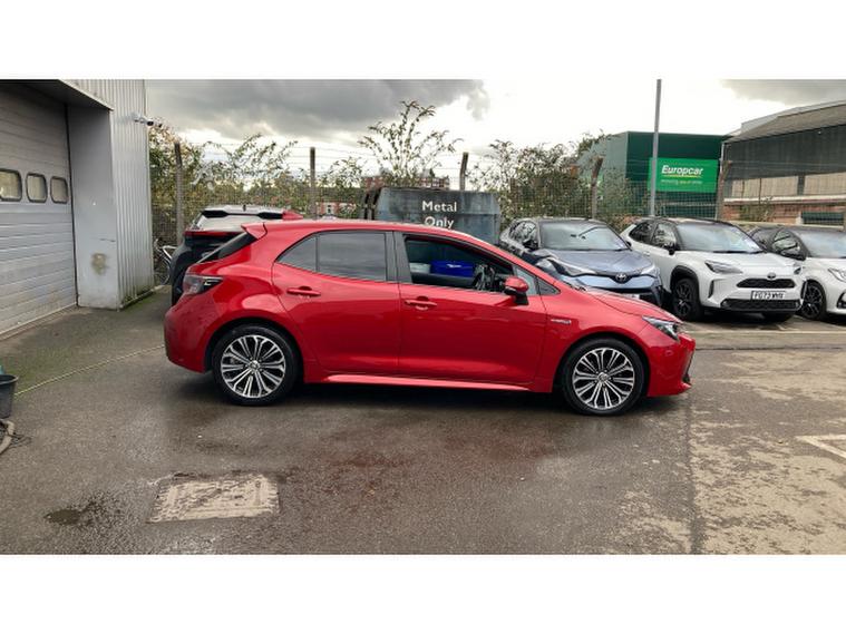 Toyota Corolla 1.8 VVT-i Hybrid Design 5dr CVT Hybrid Hatchback, , Imagine a car that doesnt just get you from A to B, but makes you feel like a secret agent on a mission called Commute in Style. Finished in vibrant Scarlet Flare, this self-charging hybrid is here to prove that efficiency and personality can co-exist in perfect harmony kind of like peanut butter and jelly, but with a lot more horsepower.