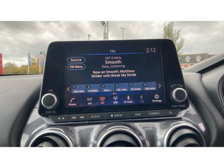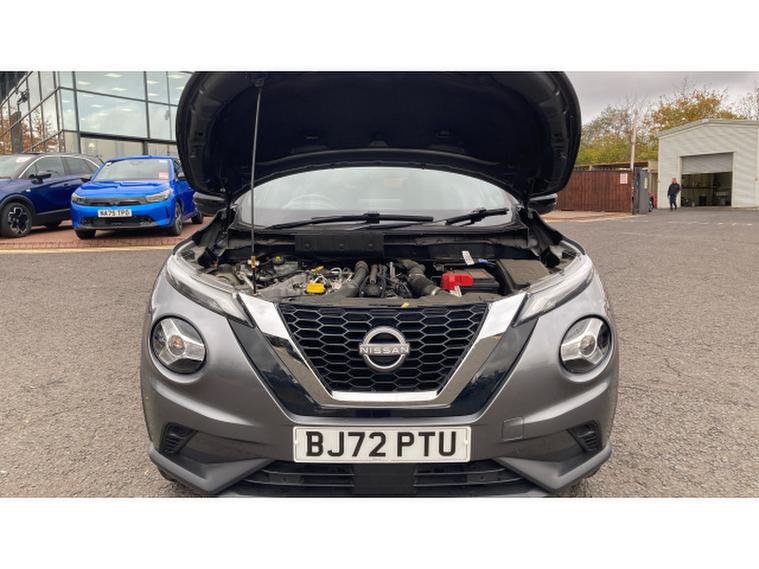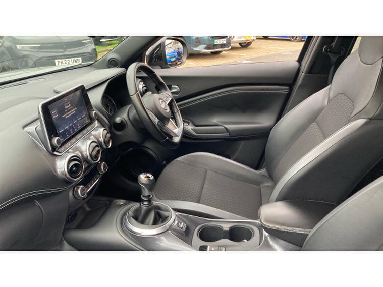 Nissan Juke 1.0 DiG-T 114 N-Connecta 5dr Petrol Hatchback, , The 2022 Nissan , Juke Hatchback 1.0 DiG-T 114 N-Connecta delivers a 1.0-litre turbocharged engine with lively 114 bhp output and efficient economy, making it agile in town yet composed on longer drives. Within the cabin youll find an 8-inch touchscreen infotainment system with built-in navigation, smartphone connectivity and WiFi services, while automatic climate control, height-adjustable drivers seat and 60/40 split folding rear seats enhance comfort and flexibility. The spec also features front and rear parking sensors (plus a rear-view camera depending on final fitment), lane departure warning and traffic-sign recognition to boost peace of mind and safety. Externally its smartly styled with 17-inch alloys, shark-fin roof antenna and LED lights, giving a bold, contemporary look. In summary: refined, tech-rich and practical, this Juke offers real everyday versatility blended with modern safety and premium touches.