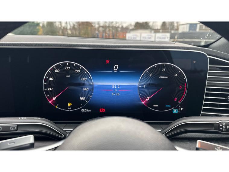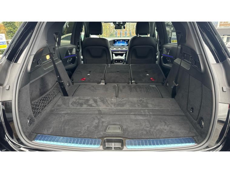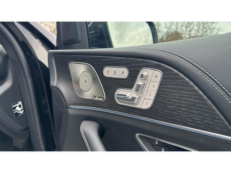 Step inside and you are greeted by true Mercedes-Benz craftsmanship. The cabin offers seven seats trimmed in sumptuous black Nappa leather, both climatised and memory adjustable for supreme comfort on every journey. The Panoramic Sliding Sunroof floods the interior with light, while the Burmester surround sound system turns every drive into a concert experience.