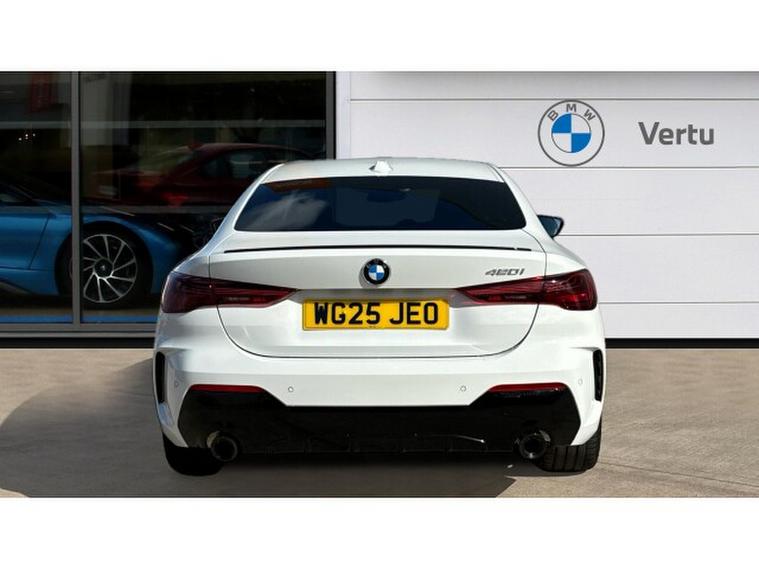 BMW 4 Series 420i M Sport 2dr Step Auto [Pro Pack] Petrol Coupe, , Introducing the 2025 BMW 420i M Sport Coupe in striking Alpine White, featuring M PerformTex Black Cloth seats with distinctive M Piping. With just 17, 047 miles on the clock, this sleek coupe combines dynamic performance with refined style, delivering a driving experience that is both engaging and luxurious. Purchasing from Vertu BMW Exeter means all our Approved Used BMWs come with 12 Months BMW Approved Warranty, 12 Months BMW Roadside Assistance, 12 Months MOT, and a full service history. Every vehicle is inspected and maintained by manufacturer-trained technicians, ensuring exceptional quality and reliability, while our team provides expert advice and support to make your ownership experience seamless.