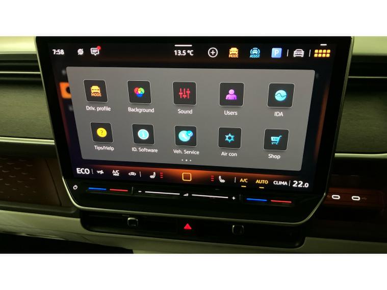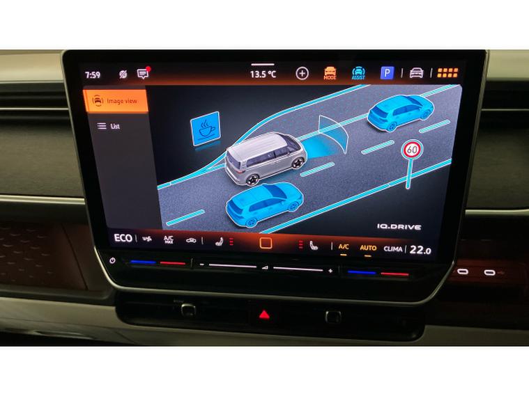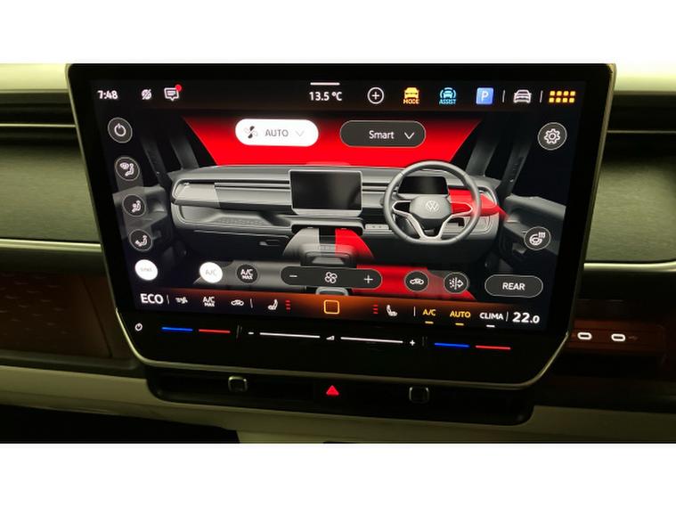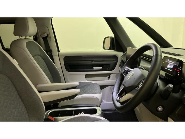 The ID. Buzz Pro Style is packed with thoughtful features to enhance your driving experience. Enjoy the convenience of a Head Up Display, which projects key information directly into your line of sight. The interior boasts pedals with distinctive Play and Pause symbols, adding a touch of personality. For added comfort and safety, it includes heated washer nozzles and a Proactive Passenger Protection System. Furthermore, the surround lighting with a logo projector creates a welcoming atmosphere as you approach the vehicle.