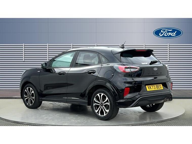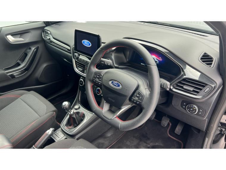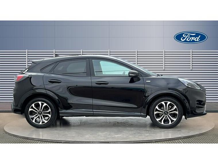 Ford Puma 1.0 EcoBoost Hybrid mHEV ST-Line 5dr Petrol Hatchback, , Gloucester Ford have this low mileage, 1 owner from new Ford Puma 1.0 EcoBoost mHEV ST-Line finished in Agate Black. This Puma 1.0 EcoBoost mHEV ST-Line in sleek Agate Black is a stunning combination of sporty design, advanced technology, and intelligent efficiency. With its bold exterior styling and dynamic proportions, the Puma ST-Line stands out from every angle. The deep, glossy Agate Black paint highlights its sculpted lines and athletic stance, while the 18-inch alloy wheels perfectly complement its sporty character, enhancing both visual appeal and performance on the road. Powered by Fords advanced 1.0-litre EcoBoost mild-hybrid (mHEV) engine, the Puma delivers an exceptional balance of efficiency, responsiveness, and driving pleasure. The hybrid technology intelligently recovers energy during braking and coasting to boost performance and reduce fuel consumption, making every journey smoother and more economical. Whether navigating city streets or enjoying open-road driving, the Puma offers a confident, agile experience thats both engaging and refined. Inside, the ST-Line trim exudes a sense of sporty sophistication. The cabin features high-quality materials, red contrast stitching, and a driver-focused cockpit designed for comfort and control. The SYNC 3 infotainment system brings advanced connectivity at your fingertips, with a user-friendly touchscreen, smartphone integration via Apple CarPlay and Android Auto, and voice-activated navigation to make every drive connected and convenient. Practicality meets innovation with thoughtful features such as rear parking sensors, which make reversing and parking effortless. The cleverly designed boot offers impressive versatility, including Fords innovative MegaBox for added storage flexibility. The Ford Puma 1.0 EcoBoost mHEV ST-Line is the perfect blend of athletic style, smart technology, and everyday practicality. In Agate Black, it exudes sophistication and confidence, making it the ideal choice for drivers who want a car thats as efficient as it is exciting.