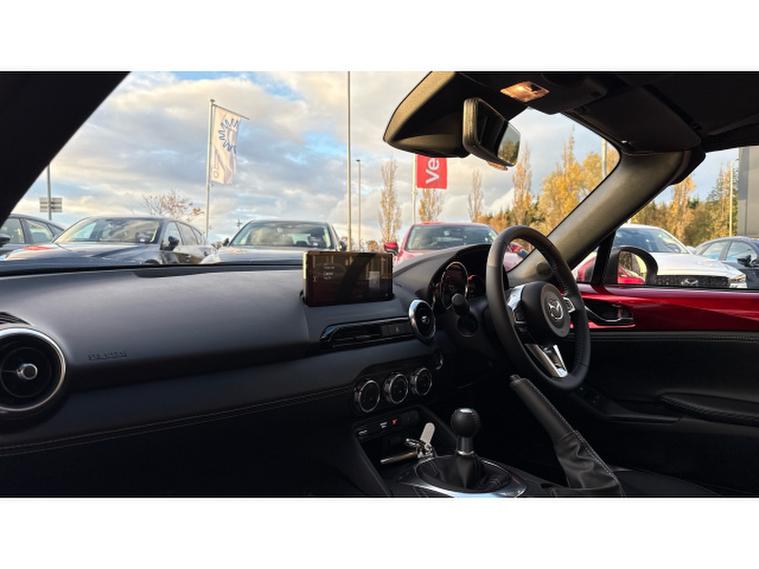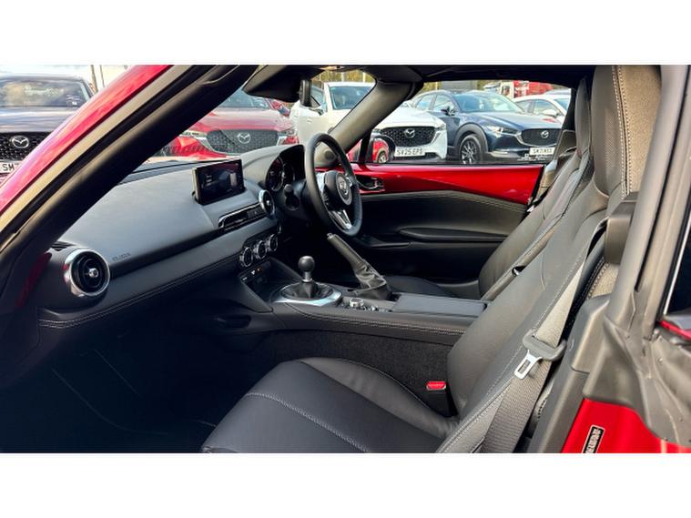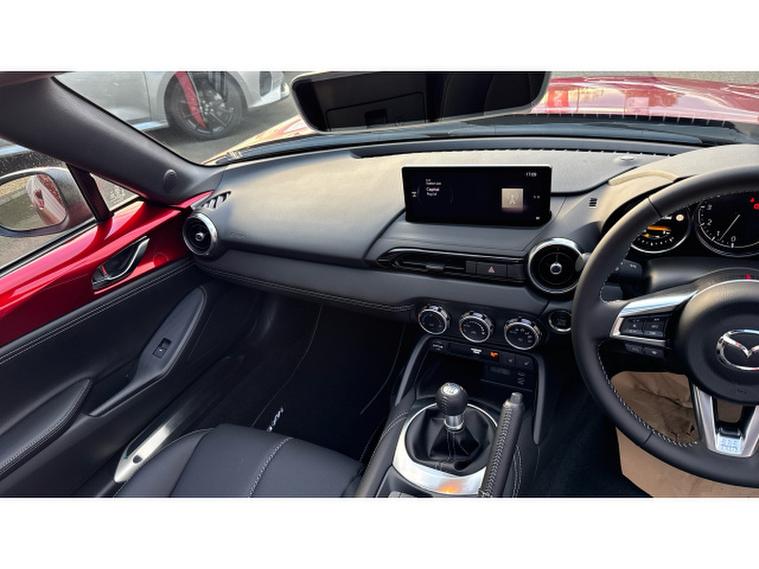 Mazda MX-5 RF 1.5 [132] Exclusive-Line 2dr Petrol Convertible, , Introducing the Mazda MX-5 1.5 [132] RF Exclusive-Line 2dr Convertible an exceptional opportunity to own one of the most iconic sports cars on the market, presented in stunning Soul Red Crystal Metallic. This pre-registered model comes with delivery mileage only, meaning youre getting a virtually brand-new vehicle at a fantastic saving against the new list price.