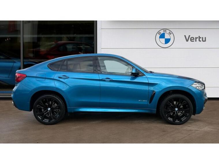 BMW X6 xDrive40d M Sport Edition 5dr Step Auto Diesel Estate, , Presenting a striking 2019 BMW X6 xDrive40d M Sport Edition, finished in the standout Long Beach Blue and paired with a sophisticated Anthracite Alcantara/Dakota leather interior. With 50, 001 miles on the clock, this dynamic Sports Activity Coup offers a perfect blend of power, luxury, and practicality. When you choose Vertu BMW Exeter, you enjoy complete peace of mind as all our Approved Used BMWs come with 12 Months BMW Approved Warranty, 12 Months BMW Roadside Assistance, 12 Months MOT, and a full service history. Every car is meticulously prepared and maintained by our manufacturer-trained technicians, ensuring you receive a vehicle that meets the highest BMW standards. Buying from Vertu BMW Exeter means exceptional customer care, expert advice, and the reassurance that you are driving away in a premium-quality car. Our dedicated team is on hand to provide you with a personalised video presentation, showcasing this X6 in detail and answering any questions you may have to help you make an informed decision. This BMW X6 xDrive40d M Sport Edition comes equipped with a host of premium features, including electric memory seats that allow you to find your perfect driving position with ease, BMWs intelligent Driving Assistant for added safety and convenience, and a head-up display that projects key driving information directly into your line of sight for a seamless driving experience. Combining commanding road presence, innovative technology, and refined comfort, this BMW X6 is ready to impress. Contact Vertu BMW Exeter today to arrange your personalised experience.