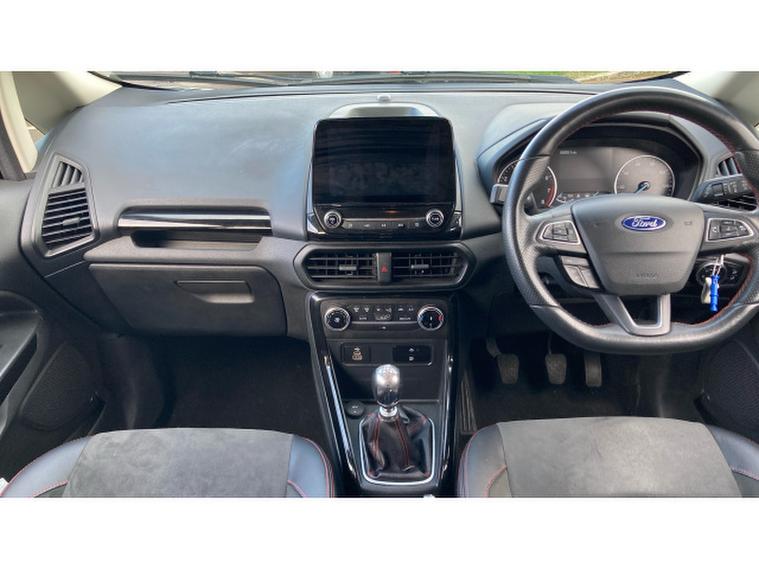 Inside, the ST-Line trim adds a touch of sportiness and sophistication. Benefit from rear parking sensors and a reversing camera that make tight manoeuvres and parking stress-free. Enjoy long motorway drives with cruise control, allowing you to relax and maintain a steady speed effortlessly. Stay connected and entertained with Apple CarPlay and Android Auto, seamlessly integrating your smartphone for music, calls, and navigation directly through the touchscreen infotainment system. The EcoSports elevated seating position gives you excellent visibility, while the spacious interior and flexible boot make it ideal for both everyday commuting and weekend adventures.