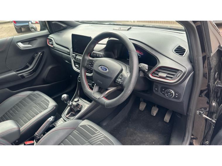 Ford Puma 1.0 EcoBoost Hybrid mHEV 155 ST-Line X 5dr Petrol Hatchback, , The 2022 Ford , Puma Hatchback 1.0 EcoBoost Hybrid mHEV 155 ST-Line X 5dr features a lively 1.0-litre mild-hybrid petrol engine delivering 155 bhp, offering sprightly acceleration and excellent fuel economy. Inside, youll find a full digital 12.3-inch instrument cluster, wireless charging pad and the Megabox extended boot space, giving both tech-savvy comfort and practical storage. The ST-Line X exterior styling includes automatic LED headlights, rain-sensing wipers, sport suspension and 18-inch alloys for a bold, modern stance. Safety and convenience are enhanced with lane-keeping aid, speed-sign recognition, selectable drive modes (Normal, Eco, Sport, Trail, Slippery), rear-parking sensors and Fords Easy Fuel capless refuelling system. In short, this Puma blends dynamic performance, refined features and everyday versatility into a stylish, efficient compact SUV.