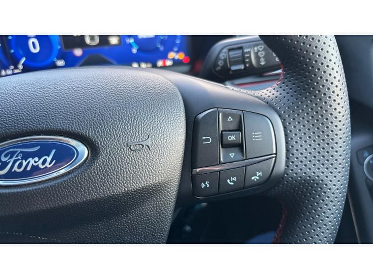 Inside, youll find premium comfort and technology, including part leather-trimmed sports seats, a 12.3-inch digital cluster, SYNC 3 infotainment system with touchscreen navigation, Apple CarPlay/Android Auto, and climate control. Safety and convenience are at the forefront with rear parking sensors, cruise control, and lane-keeping assist.