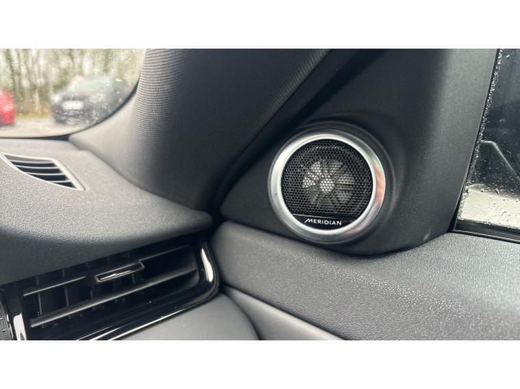 Inside, the ebony Windsor leather interior exudes refinement. Every surface has been carefully crafted, blending comfort with modern design. The fixed panoramic roof floods the cabin with natural light, creating an open and inviting space, while the Meridian sound system delivers a truly immersive listening experience, the perfect soundtrack for every journey.