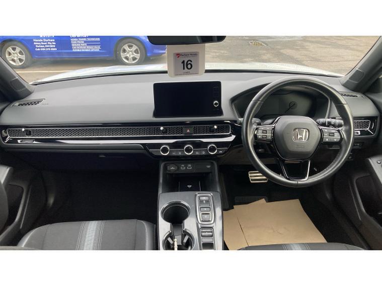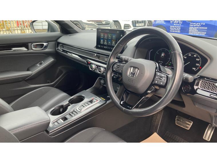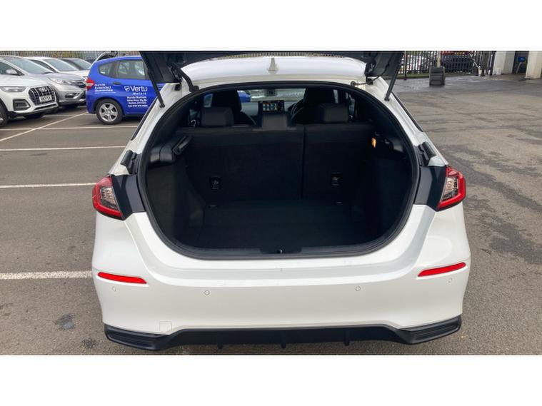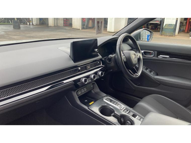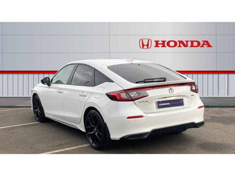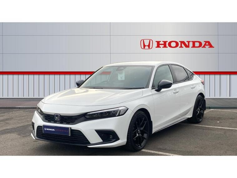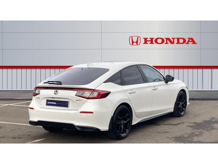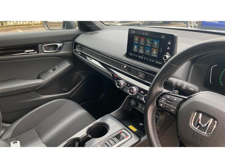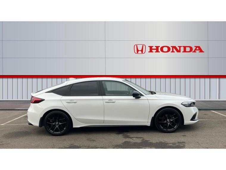 Honda Civic 2.0 eHEV Sport 5dr CVT Hybrid Hatchback, , Finished in striking Platinum White, this low mileage, one owner 2023 Honda Civic 2.0 e:HEV Sport CVT is a credit to its former keeper. It perfectly combines efficiency, performance, and cutting-edge technology. Powered by Honda's latest self-charging hybrid system, it delivers a smooth, responsive drive while keeping running costs low. Under the bonnet, the innovative 2.0-litre e:HEV hybrid powertrain blends petrol and electric motors seamlessly for strong acceleration with excellent fuel efficiency. The CVT automatic transmission ensures effortless, refined driving in both city streets and open roads. Inside, the cabin is designed for comfort, practicality, and connectivity. Sport seats provide excellent support, while dual-zone climate control keeps the interior perfectly balanced. The Honda CONNECT infotainment system with satellite navigation, Apple CarPlay, and Android Auto keeps you connected and entertained, while the premium audio system delivers crisp, immersive sound. Practical features include a reversing camera, front and rear parking sensors, and keyless entry with push-button start, while advanced safety technology such as adaptive cruise control, lane keep assist, and collision mitigation braking system provides reassurance on every journey. On the outside, the Civic Sport makes a bold statement with 18-inch alloy wheels, sharp body lines, and sporty styling, ensuring it looks every bit as dynamic as it drives. Call in or reserve online day or night.