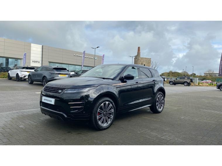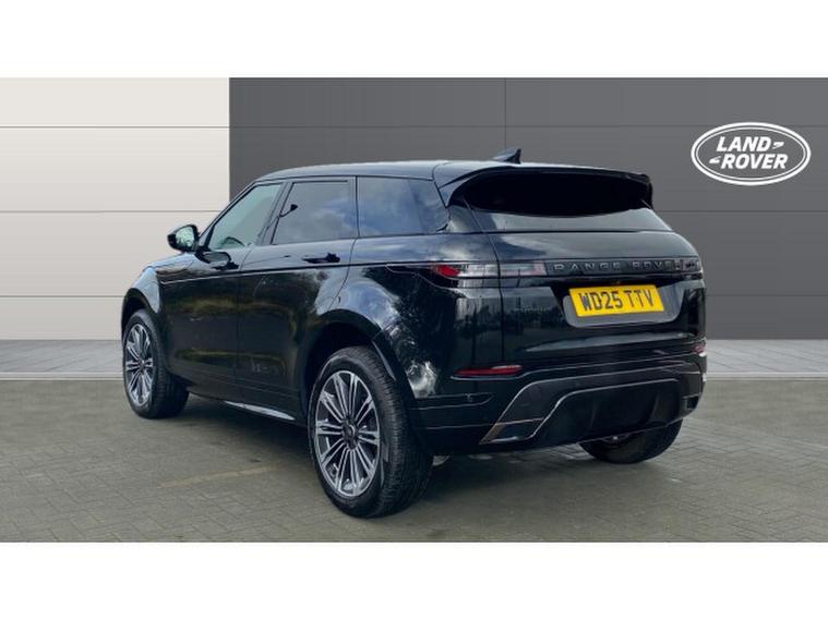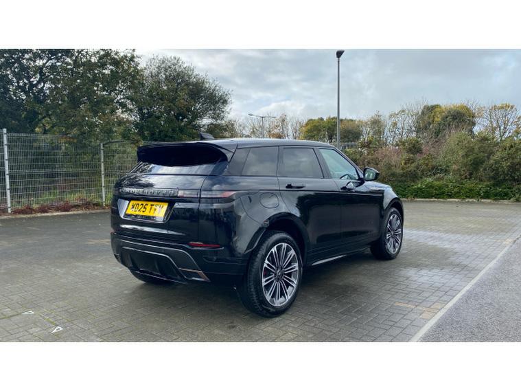 Land Rover Range Rover Evoque 2.0 D200 Dynamic HSE 5dr Auto Diesel Hatchback, , Vertu JLR Truro are proud to offer: the stunning 2025 Range Rover Evoque D200 Dynamic HSE, finished in Santorini Black Metallic with luxurious Ebony Windsor Leather upholstery. This elegant one-owner example, previously part of our senior management fleet and showing just 4, 376 miles, offers a perfect combination of contemporary design, refinement, and performance. Standard specification highlights include Matrix LED headlights, 20-inch Gloss Sparkle Silver alloy wheels, Heated and cooled 14-way electric memory front seats, Meridian Sound System, Panoramic Roof, Power Tailgate, Adaptive Cruise Control, 3D Surround Camera, Keyless Entry, Wireless Apple CarPlay/Android Auto, and Configurable Dynamic Driving Modes. The Evoque Dynamic HSE delivers the commanding presence and versatility of a Range Rover in a compact, efficient package, built for modern luxury living.