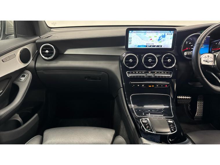 Finished in MOJAVE SILVER METALLIC and styled with these lovely 19" AMG 5 TWIN SPOKE ALLOY WHEELS makes this a desirable looking GLC.   KEYLESS GO makes it easy to enter the car without the use of a KEY and once inside you are greeted with HEATED BLACK LEATHER SEATS with 4 WAY LUMBAR SUPPORT.   APPLE CAR PLAY and ANDRIOD AUTO together with the MBUX SAT NAV makes the digital experience second to none.