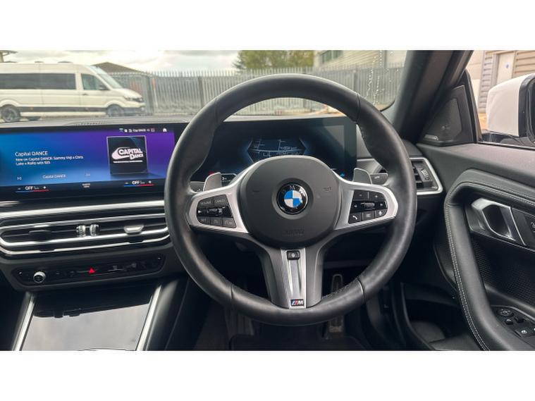 Inside, the 2 Series delivers a refined and engaging driving environment. Highlights include a heated steering wheel, front heated sport seats, ambient lighting and the Harman/Kardon surround sound system for premium audio quality. The Live Cockpit Plus system with widescreen display keeps you connected, while features such as adaptive LED headlights, High-Beam Assistant and front and rear parking sensors add confidence to every drive.