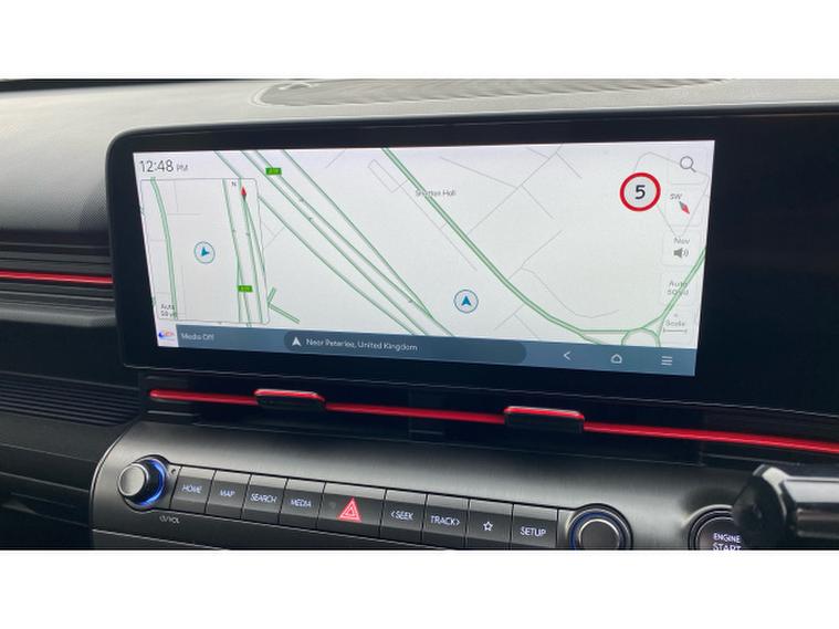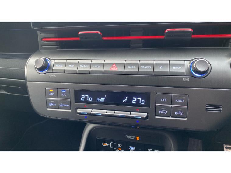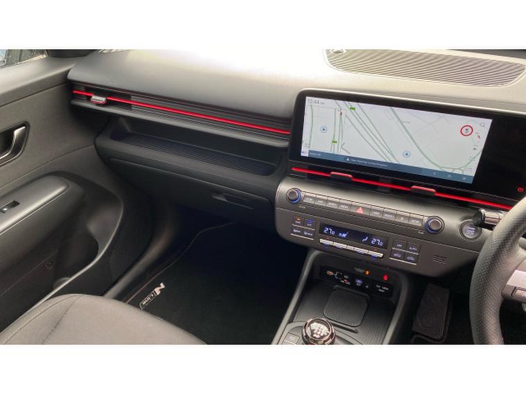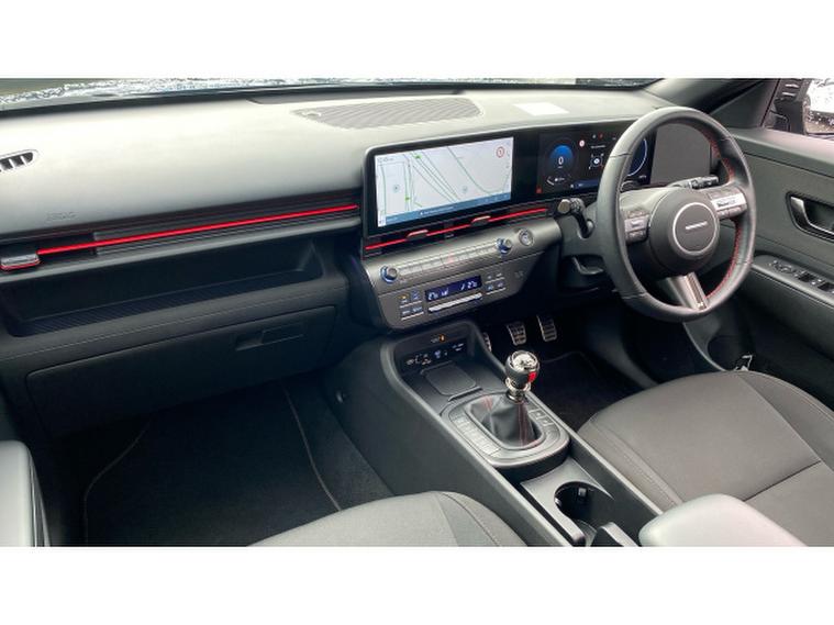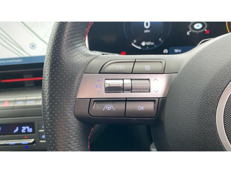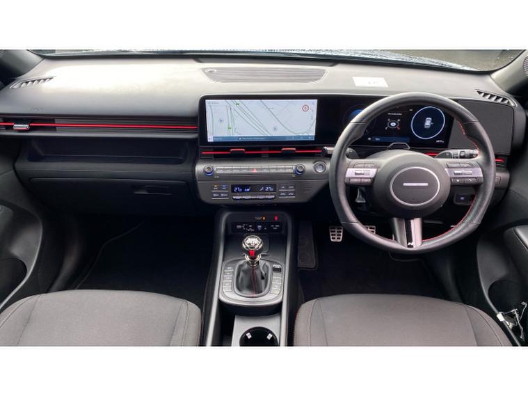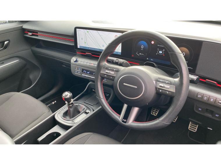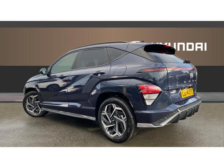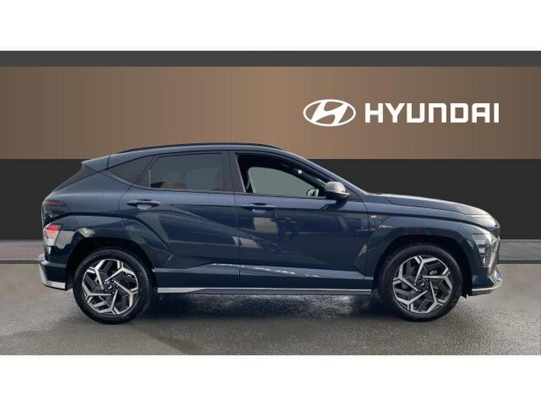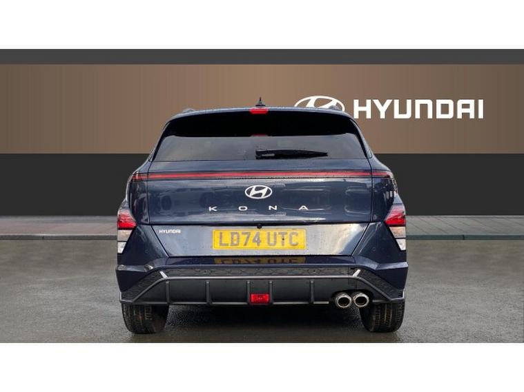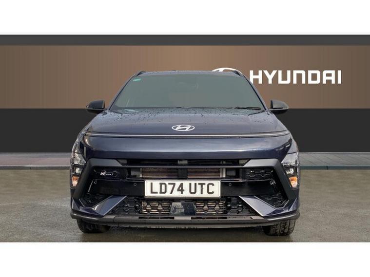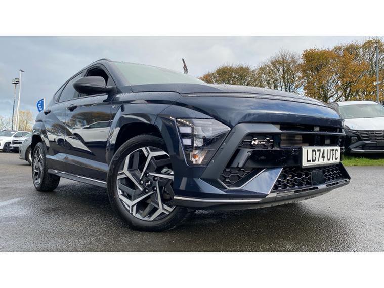 Hyundai KONA 1.0T 100 N Line 5dr Petrol Hatchback, , The Hyundai Kona Hatchback 1.0T 100 N Line 5dr in striking blue is a modern, sporty compact SUV that perfectly blends style, efficiency, and advanced technology. Registered as a 2024 74 plate and showing just 6, 977 miles, this nearly new model offers an exciting driving experience with the reliability youd expect from Hyundai. Under the bonnet, the 1.0-litre turbocharged petrol engine delivers 100 bhp, providing smooth and responsive performance alongside impressive fuel efficiency. The N Line trim gives the Kona a bold and athletic appearance, featuring 18-inch alloy wheels, N Line body styling, LED headlights, and distinctive sporty bumpers. Inside, the cabin combines comfort with sophistication, offering N Line sport seats with red stitching, a leather-wrapped steering wheel, dual-zone climate control, and high-quality materials throughout. The tech is equally impressive, with a 10.25-inch digital instrument cluster, a touchscreen infotainment system with satellite navigation, Apple CarPlay and Android Auto connectivity, and a rear-view camera for added convenience. Safety features include lane keeping assist, forward collision warning, and adaptive cruise control. Combining sleek design, efficient performance, and advanced technology, the Hyundai Kona N Line is a fantastic choice for drivers seeking style and practicality. Pop in here at Hyundai Peterlee to see it in person.