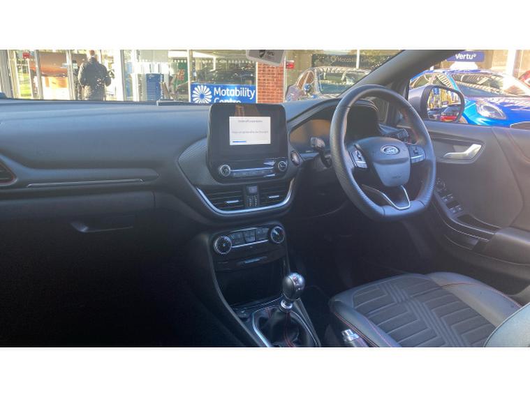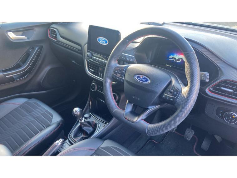 Step inside and youll find a cabin that blends sportiness with sophistication. The ST-Line sports seats, flat-bottomed steering wheel, and premium finishes create a truly driver-focused environment. The built-in sat-nav ensures every journey is seamless, while Apple CarPlay keeps you connected with effortless access to your apps, music, and messages. Add cruise control for easy motorway driving, rear parking sensors for confident manoeuvring, and lane keep assist for extra peace of mind  and youve got a car thats as smart as it is stylish.