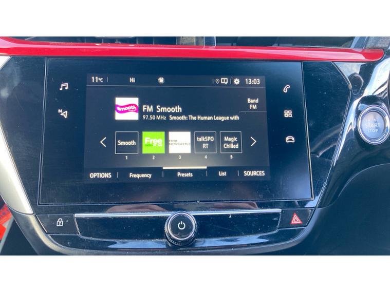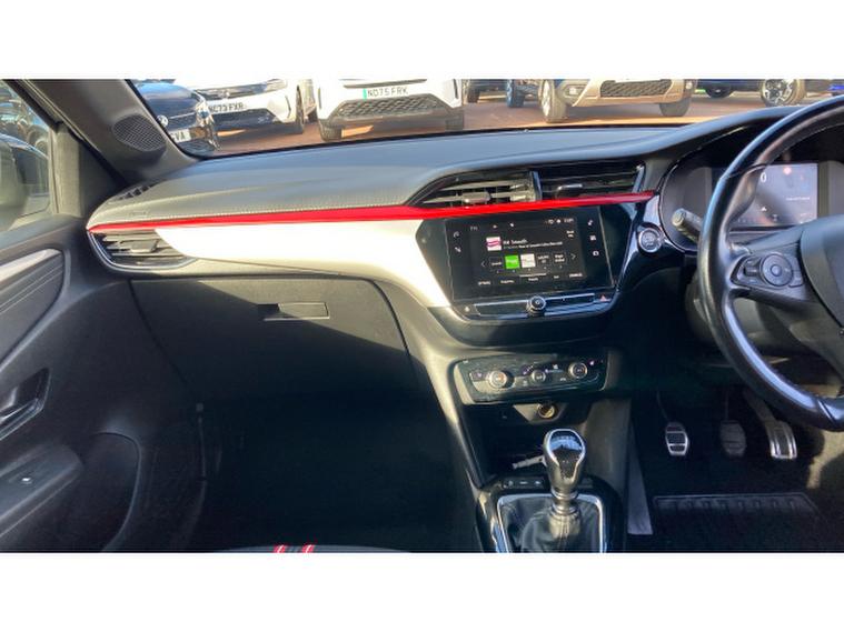 Vauxhall Corsa 1.2 Turbo SRi Nav Premium 5dr Petrol Hatchback, , The 2020 Vauxhall Corsa Hatchback 1.2 Turbo SRi Nav Premium 5-dr combines a lively 1.2-litre turbo petrol engine with a properly equipped trim that includes a 7-inch touchscreen infotainment system with sat-nav, smartphone mirroring and DAB radio, plus a digital drivers display and keyless entry/start for modern convenience. On its exterior, the SRi styling gives 17-inch alloy wheels, black roof and A-pillars, LED daytime running lights and dark-tinted rear windows for a sporty, premium look. Safety and practicality are addressed with features such as automatic emergency braking, lane-departure warning, 60:40 split-folding rear seats and front/rear parking sensors. The result is a well-rounded compact car that feels refined and well specd, offering both driving engagement and everyday usability.