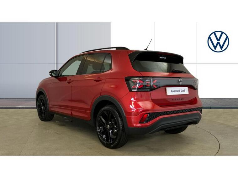 Volkswagen T-Cross 1.0 TSI Black Edition 5dr DSG Petrol Estate, , The Volkswagen T-Cross Black Edition in striking Kings Red Metallic is a compact SUV that effortlessly combines style and practicality. Its 1.0 TSI engine, paired with a smooth 7-speed DSG transmission, delivers a refined driving experience, making it equally at home in city streets or on longer journeys. The five-door layout ensures easy access for passengers and cargo, while the Black Edition trim adds a sporty, distinctive edge to its appearance.
