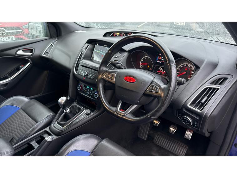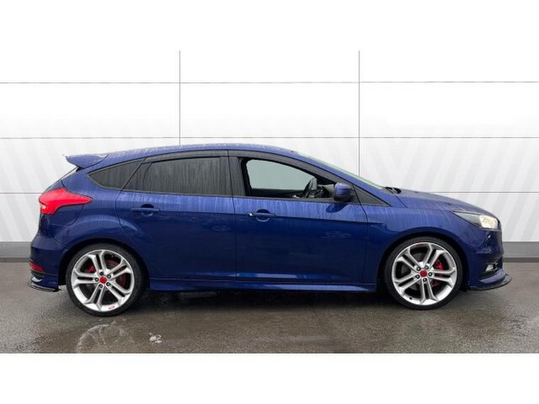 Ford Focus ST 2.0T EcoBoost ST-2 5dr Petrol Hatchback, , This 2017 Ford Focus Hatchback 2.0T EcoBoost ST-2, finished in striking blue, is a perfect blend of hot-hatch excitement and everyday practicality. Its bold styling immediately stands out, with aggressive front and rear bumpers, a honeycomb grille, twin exhaust outlets, and a prominent rear spoiler that hint at its performance pedigree. The 18-inch alloy wheels and signature ST badging complete the sporty exterior look.