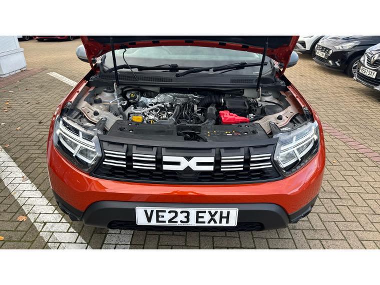Dacia Duster 1.3 TCe 130 Expression 5dr Petrol Estate, , Dacia takes great pride in fit-for-purpose materials that put function before fanciness, which fits the Dusters character. Extensive use of an unpainted and part-recycled plastic called Starkle for exterior trim in vulnerable areas is a good example, the pebbled effect actually reminiscent of the fancy chopped carbon fibre seen on supercars like Lamborghinis. But much more resistant to car park scrapes and other battle scars! See also neat features like the YouClip accessory mounts scattered around the car to which you can attach tablet holders, storage pouches, extra cupholders or more. Trim levels go from the basic Essential with analogue instruments and a phone holder so you can use your handset for nav and infotainment via the Dacia app while Expression and up get a more up-to-date digital display and central screen with a reversing camera and Apple CarPlay and Android Auto connectivity. Built-in nav features on the higher grades, these also getting an improved speaker system. At the top of the tree are the (relatively) more luxurious Journey and unashamedly outdoorsy Extreme trim levels with the aforementioned rubber floor mats and neat modular roofbars that convert from rails to bars for racks to carry bikes, canoes or the like in a matter of minutes.