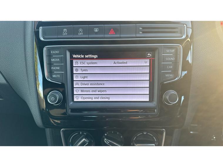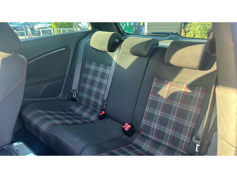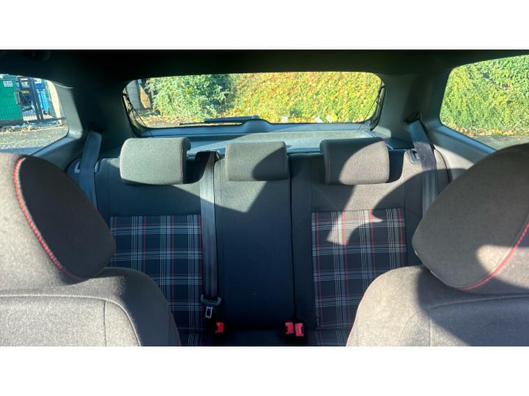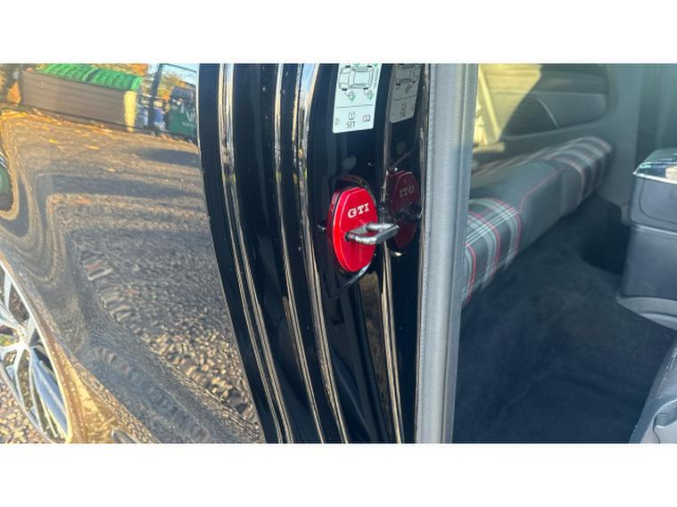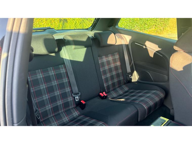 The exterior screams performance: red GTI accents, honeycomb grille, dual chrome exhausts, bold 17-inch Parabolica alloy wheels, and sporty bumpers. Inside, youre greeted by iconic tartan sports seats, flat-bottomed multifunction steering wheel, touchscreen infotainment with Bluetooth and DAB, and ambient red lightingits a driver-focused cabin with a premium touch.