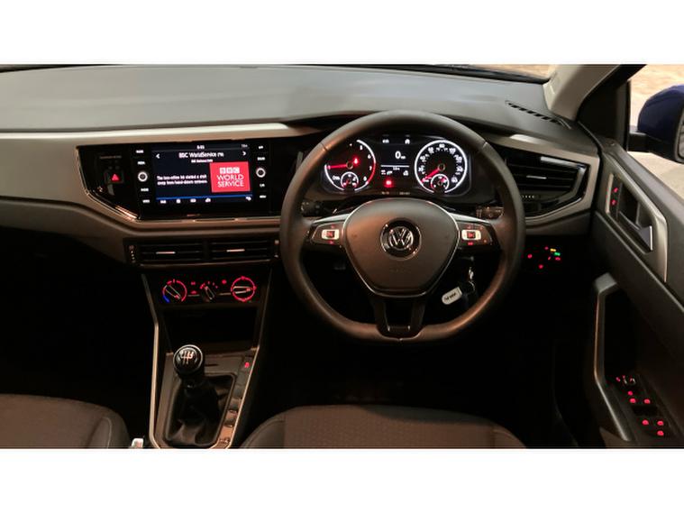 Volkswagen Polo 1.0 TSI 95 SE 5dr Petrol Hatchback, , The Volkswagen Polo SE in Reef Blue Metallic presents a smart and practical option for those seeking a compact hatchback with modern features. Its 1.0 TSI engine delivers a sprightly 95PS, paired with a 5-speed manual transmission, offering a lively yet efficient drive ideal for both city streets and longer journeys. The exterior is complemented by 15" 'Sassari' alloys, adding a touch of style to the Polo's clean, understated design.