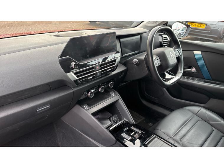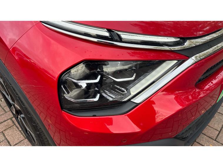 The e-C4 is a spacious car with great looks and superb comfort making every journey a pleasure and comes with an impressive level of standard equipment. It includes leather upholstery with heated front seats and heated steering wheel, dual zone climate control, Citroen Connect sat nav, front and rear parking sensors with panoramic camera, Apple car-play/Android auto, blue-tooth, USB, keyless entry and start, LED lights, auto lights and wipers. The car is finished in eye-catching metallic red paintwork with 18 inch diamond cut alloys and is in exceptional condition having been prepared to the highest standards by our Citroen trained technicians.