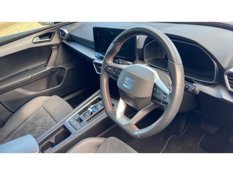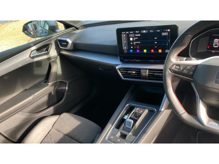 SEAT Leon 1.4 eHybrid FR Sport 5dr DSG Estate, , The Seat Leon shares most of its oily bits with the Volkswagen Golf on which its based, and in estate form, it also competes with other mid-size family wagons like the Ford Focus Estate and Vauxhall Astra Sports Tourer, to name but a few. Its praise indeed, then, that even in a class thats full of seriously impressive cars, the Leon is one of the more appealing options. All versions of the Leon are fitted with an impressive slice of standard safety kit that includes seven airbags, electronic stability control and, importantly, automatic emergency braking complete with pedestrian protection. The Leon range is well-equipped from the off, with even the basic SE-trimmed models fitted with alloy wheels, air-con, cruise control, Bluetooth, metallic paint, front fog lights with cornering function, leather steering wheel and gear knob, four electric windows and a touchscreen infotainment system with DAB, Bluetooth and full smartphone integration courtesy of both Android Auto and Apple CarPlay. SE Dynamic adds bigger wheels, rear privacy glass, sat-nav and front and rear parking sensors, while FR trim earns you a sporty exterior makeover, full LED lighting, climate control and automatic lights and wipers.