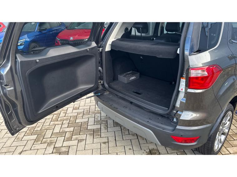The Titanium trim elevates the EcoSports design with 17-inch alloy wheels, chrome accents, and LED daytime running lights, giving it a refined and modern appearance. Its elevated ride height and compact dimensions make maneuvering in tight streets effortless, while the estate-style rear provides practical cargo space for shopping, sports equipment, or weekend trips.
