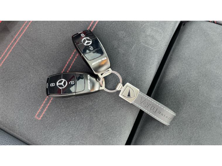 Technology takes centre stage with Active Parking Assist with PARKTRONIC, Reversing Camera, and Electrically Folding Door Mirrors, making city driving effortless. Entertainment is delivered through a stunning Burmester Surround Sound System, complemented by Digital Radio and Wireless Charging for seamless connectivity. The Keyless Go system adds everyday convenience, and those striking 18-inch AMG 5 Twin-Spoke Light Alloy Wheels complete the cars athletic stance.