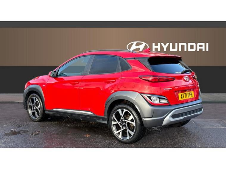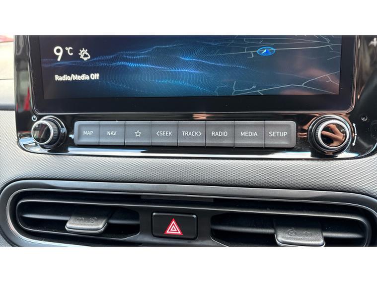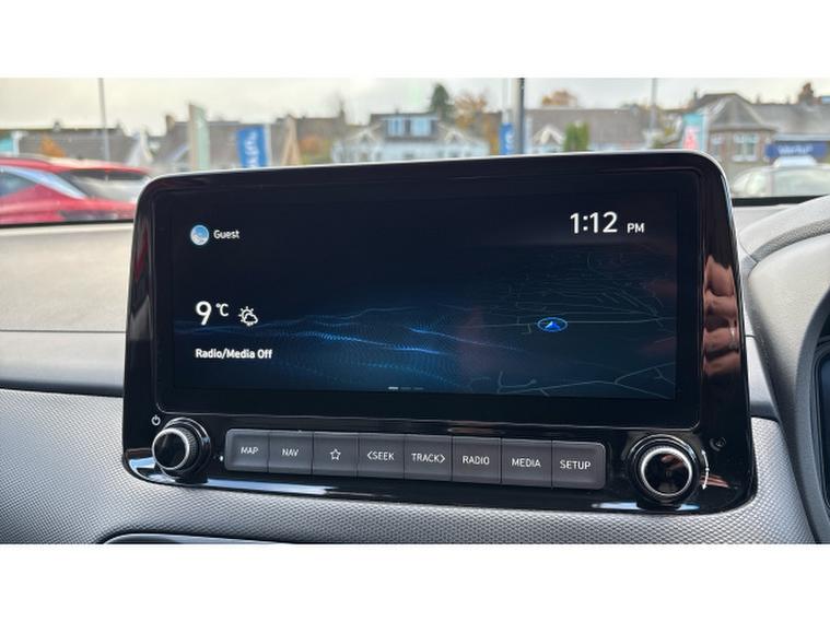 As the Ultimate trim level, this Kona comes exceptionally well equipped. Features include a panoramic glass sunroof that enhances the sense of space, heated front seats and heated steering wheel for year-round comfort, and dual-zone automatic climate control for personalised cabin settings. The large touchscreen infotainment system supports Apple CarPlay and Android Auto, keeping you seamlessly connected on the move. Front and rear parking sensors along with a reversing camera make manoeuvring effortless, while LED headlights and distinctive daytime running lights add both style and visibility.