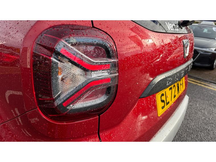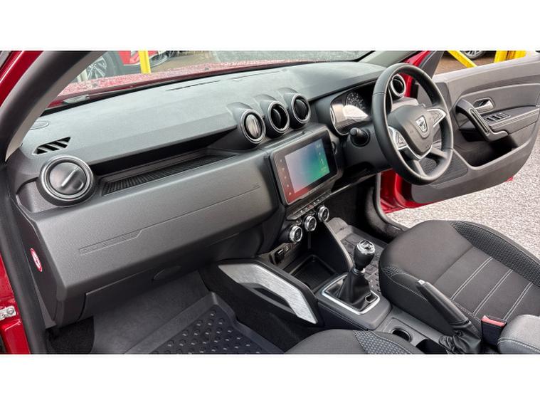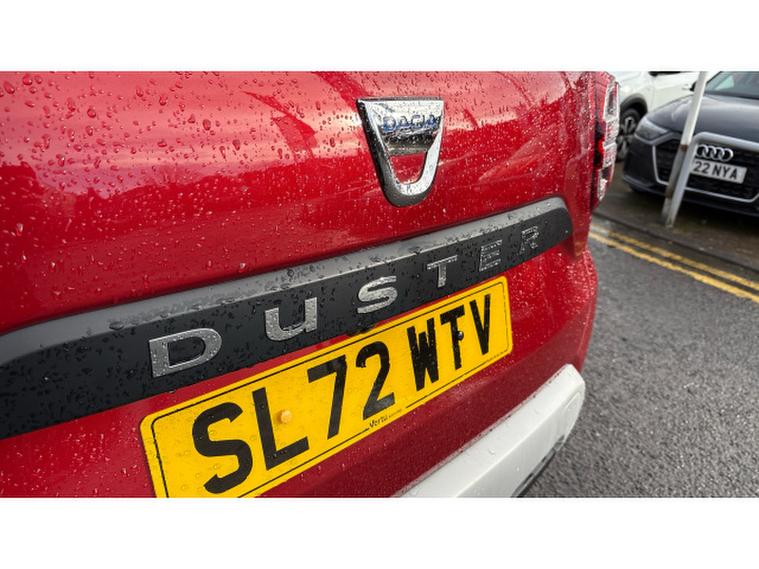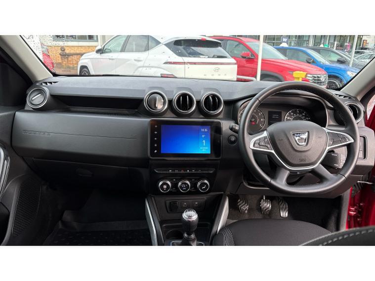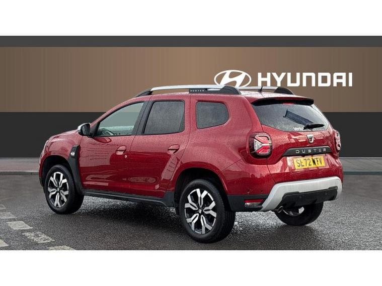 Dacia Duster 1.3 TCe 130 Prestige 5dr Petrol Estate, , Discover the value and versatility of the 2022 Dacia Duster 1.3 TCe 130 Prestige, finished in eye-catching Fusion Red metallic paint. With just under 10, 500 miles, this low-mileage SUV offers a perfect blend of rugged styling, practicality, and modern comfort. Powered by the responsive 1.3 TCe petrol engine producing 130PS, it delivers smooth and confident performance for both city driving and family adventures. The Prestige trim adds impressive features including alloy wheels, roof rails, satellite navigation, rear-view camera, parking sensors, climate control, and smartphone connectivity through Apple CarPlay and Android Auto. Spacious, stylish, and efficient, this Duster is a great choice for anyone seeking a capable and comfortable SUV. A personalised video is available on request.