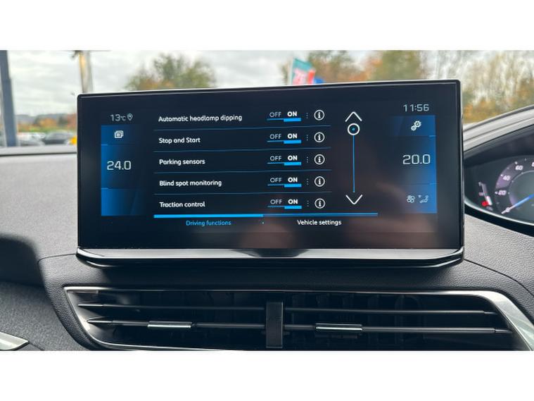 - Peugeot i-cockpit with configurable 12.3" headup digital instrumental panel and compact sports steering wheel