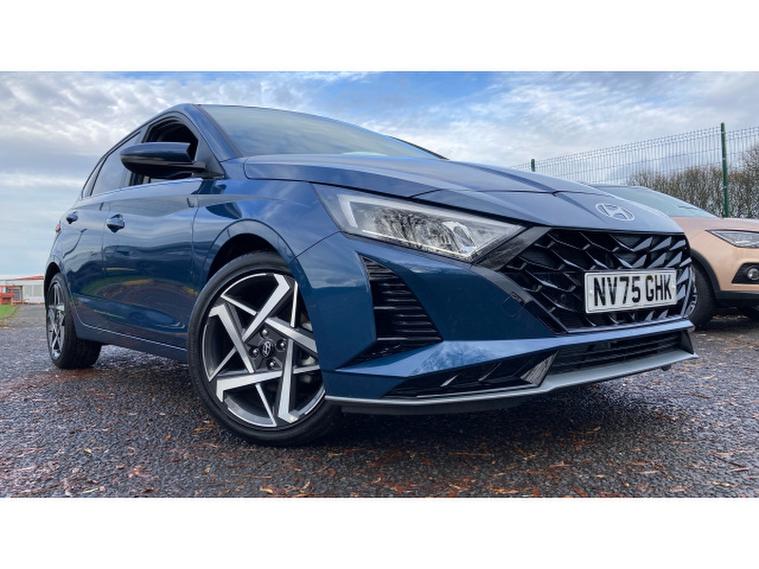 Hyundai i20 1.0T GDi Premium 5dr Petrol Hatchback, , The Hyundai i20 1.0T GDi Premium 5dr Petrol Hatchback is a stylish, efficient, and feature-packed small car thats perfect for modern driving. With just 10 miles on the clock and finished in eye-catching Vibrant Blue Pearl, this 25/75 reg model is practically brand new and ready to make a statement on the road. Powered by a responsive 1.0-litre turbocharged petrol engine, it delivers an excellent balance of performance and economy, making it ideal for both city driving and longer journeys. The Premium trim adds a touch of sophistication, offering high-quality materials, advanced technology, and impressive comfort throughout. Inside, youll find a spacious and refined cabin with a large touchscreen infotainment system featuring Apple CarPlay, Android Auto, satellite navigation, and a premium sound system. Practical touches like climate control, cruise control, and rear parking sensors make every drive enjoyable and effortless. Safety is a top priority, with intelligent systems including lane keeping assist, driver attention warning, and forward collision avoidance. The i20s sleek lines, bold grille, and modern LED lighting give it a confident, contemporary look that stands out wherever it goes. Combining efficiency, technology, and style, this Hyundai i20 is a fantastic choicepop in here at Hyundai Peterlee today to see it up close and take it for a test drive.