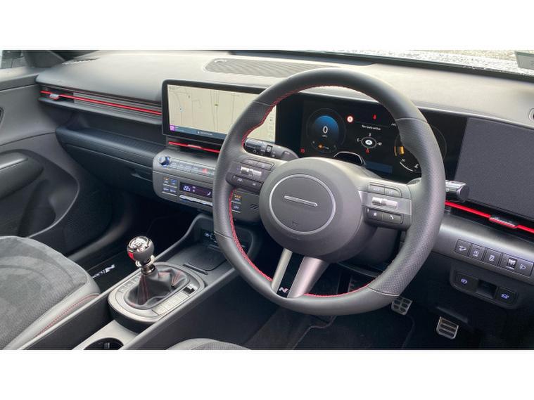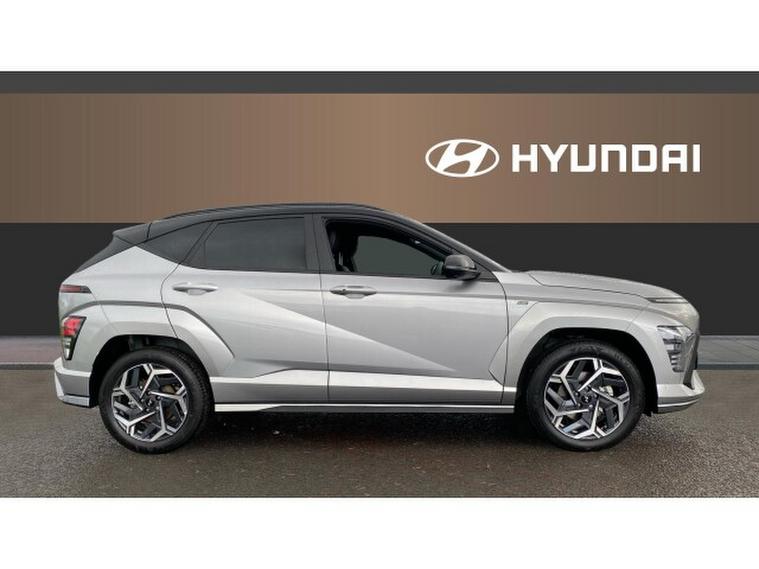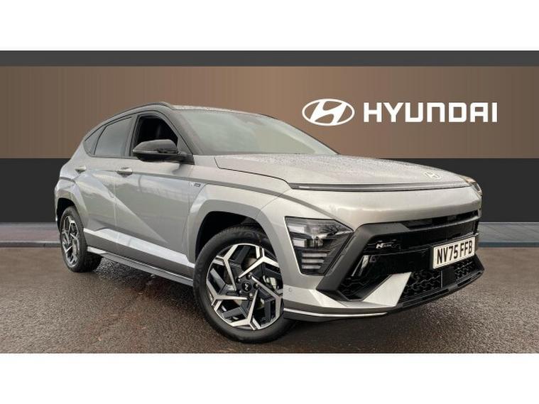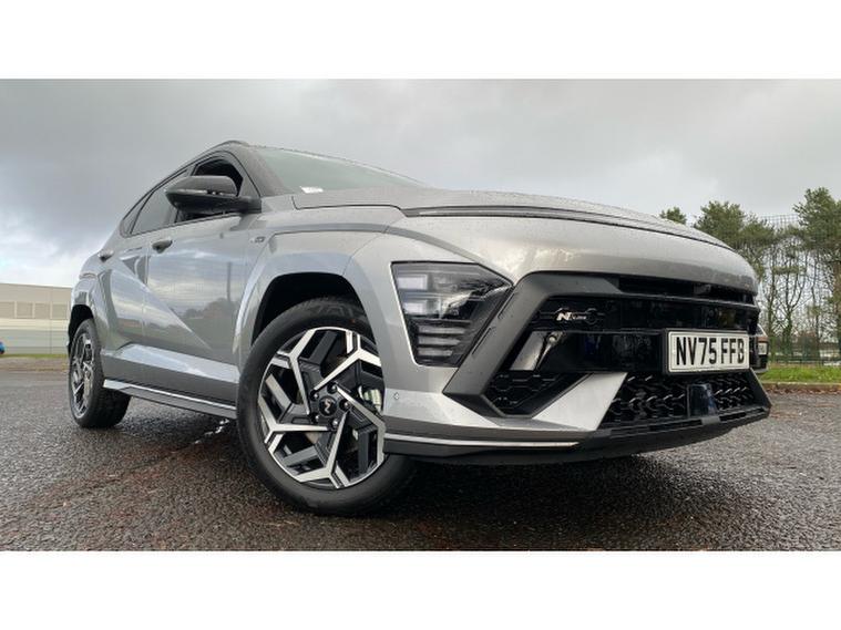 Hyundai KONA 1.6T 138 N Line S 5dr Petrol Hatchback, , This Hyundai KONA 1.6T 138 N Line S 5dr Petrol Hatchback is a sporty and sophisticated compact SUV that perfectly combines performance, technology, and style. With just 10 miles on the clock and finished in stunning Shimmering Silver Metallic, this 25/75 reg model is practically brand new and ready to impress. Under the bonnet, the 1.6-litre turbocharged petrol engine delivers 138 bhp, offering lively acceleration and smooth power delivery for an engaging drive, whether youre navigating city streets or enjoying open-road adventures. The N Line S trim enhances the KONAs dynamic appeal with bold exterior styling, including unique N Line bumpers, sporty alloy wheels, and eye-catching detailing. Inside, youll find a premium cabin designed for comfort and excitement, featuring N Line sports seats, red stitching, and a flat-bottom steering wheel. The high-tech infotainment system includes a large touchscreen, satellite navigation, and full smartphone connectivity. Additional highlights include a premium sound system, heated and ventilated front seats, and a range of advanced safety features such as lane keep assist and forward collision avoidance. Combining practicality with sporty flair, this KONA delivers an exceptional driving experience. Pop in here at Hyundai Peterlee today to see this stunning Shimmering Silver model up close and take it for a drive.