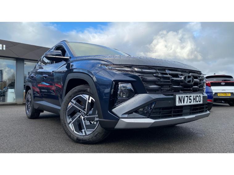 Hyundai TUCSON 1.6T Advance 5dr Petrol Estate, , The Hyundai TUCSON 1.6T Advance 5dr Petrol Estate is a stylish and versatile SUV that combines modern design, advanced technology, and strong performance. With only 10 miles on the clock and finished in striking Pearl Sailing Blue, this 25/75 reg model is essentially brand new and ready to hit the road. Powered by a 1.6-litre turbocharged petrol engine, it delivers responsive and smooth performance, offering both efficiency and power for city driving and longer journeys. The Advance trim level ensures a well-equipped driving experience, featuring a high-quality interior with comfortable seating, intuitive controls, and a range of modern amenities. Technology highlights include a touchscreen infotainment system with Apple CarPlay and Android Auto, satellite navigation, and a premium sound system, keeping you connected and entertained on every trip. Safety is a priority, with advanced features such as lane keeping assist, blind-spot monitoring, and forward collision avoidance providing added peace of mind. The TUCSON also offers a spacious cabin and generous boot space, making it perfect for families or anyone who needs practicality without compromising on style. With its sleek exterior, refined interior, and impressive driving dynamics, this Hyundai TUCSON is a standout choice. Pop in here at Hyundai Peterlee today to see this Pearl Sailing Blue model in person and experience it for yourself.