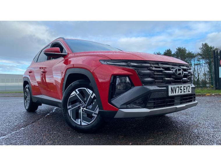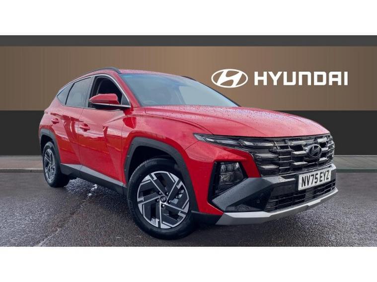 Hyundai TUCSON 1.6T Advance 5dr Petrol Estate, , The Hyundai TUCSON 1.6T Advance 5dr Petrol Estate is a bold, modern SUV that blends dynamic styling with comfort, technology, and efficiency. With just 10 miles on the clock and finished in striking Engine Red Solid, this 25/75 reg model is basically brand new and ready to make a statement on the road. Powered by a responsive 1.6-litre turbocharged petrol engine, it delivers a smooth yet energetic drive, offering excellent performance whether youre navigating city streets or cruising on the motorway. The Advance trim provides an impressive level of equipment, including a high-resolution touchscreen infotainment system with Apple CarPlay and Android Auto, dual-zone climate control, and a suite of driver-assistance technologies such as lane keeping assist and forward collision avoidance. Inside, the TUCSON offers a spacious and refined cabin with premium materials, comfortable seating, and smart storage solutions, making it perfect for families and long journeys alike. The bold design, with its sculpted lines and distinctive LED lighting, gives the TUCSON a commanding road presence. Practical, stylish, and packed with advanced features, this Hyundai TUCSON delivers everything you could want from a modern SUV. Pop in here at Hyundai Peterlee today to see this stunning Engine Red model in person and experience it for yourself.