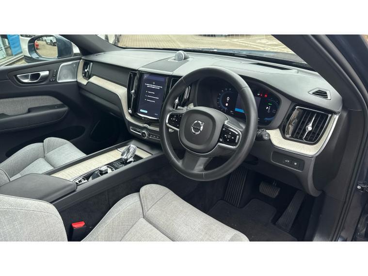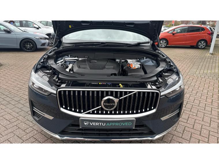 Volvo XC60 2.0 T8 [455] RC PHEV Ultimate Dark 5dr AWD Gtron Estate, , This 2023 Volvo XC60 boasts a full service history, with its last service completed on the 16th October at 29563 miles. This Four Wheel Drive plug-in hybrid, powered by a 2.0L petrol engine, meets Euro 6 emissions standards and offers a substantial towing weight of 2250 kg as well as offering an electric range of up to 62 miles. Inside, you'll find a premium sound system by Bowers and Wilkins, a Bluetooth handsfree system for seamless connectivity, and a power glass tilt and slide panoramic sunroof with a sun curtain. For convenience, it includes front and rear park assist sensors and a heated steering wheel, ensuring comfort in all conditions. The XC60 Ultimate Bright stands out with its impressive acceleration, reaching 0-60mph in just 4.6 seconds, demonstrating its dynamic performance. This capability, combined with its large boot space, makes it a versatile choice for both daily driving and longer journeys. The inclusion of these advanced features and its strong performance metrics indicate a superior driving experience compared to other vehicles in its class.