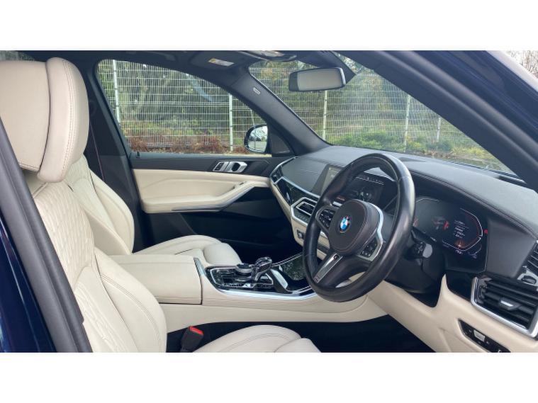 BMW X5 xDrive40d MHT M Sport 5dr Auto [7 Seat] Diesel Estate, , Vertu JLR Truro are proud to offer this 2022 BMW X5 40d M Sport Auto, finished in striking BMW Individual Tanzanite Blue Metallic with BMW Individual Extended Merino Leather in Ivory White.