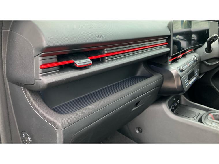 Hyundai KONA 1.0T N Line 5dr Petrol Hatchback, , This 2024 Hyundai KONA T GDi N Line presents an exceptional opportunity with its remarkably low mileage of just 6003 miles. This Euro 6 compliant model boasts a 1.0 litre petrol engine and is presented in the sporty N Line trim. Inside, you'll find convenient features such as a wireless phone charging pad and Bluetooth connectivity with voice recognition, making your journeys more connected and less cluttered. The automatic headlights with a dusk sensor ensure optimal visibility, while the heated steering wheel adds an extra touch of comfort during colder drives.