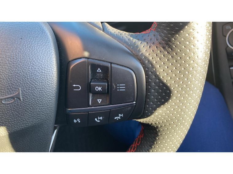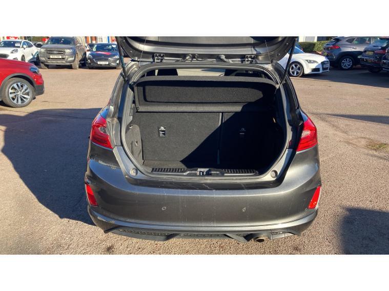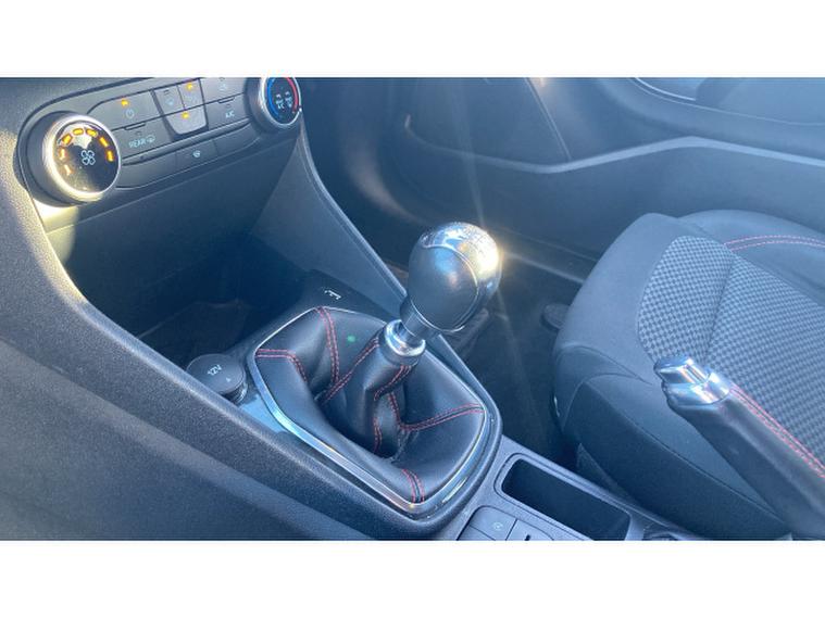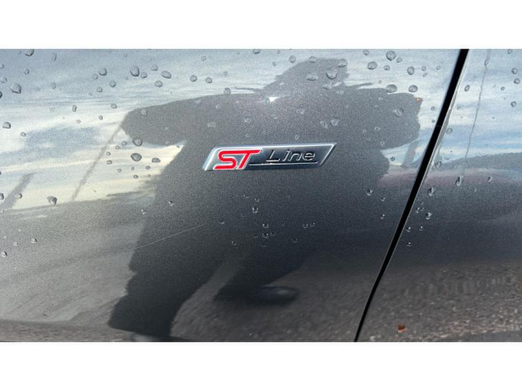 The ST-Line Edition trim adds a performance-inspired look, featuring 17 alloy wheels, ST-Line body kit, sports suspension, rear privacy glass, and a flat-bottomed steering wheel. Inside, enjoy sport seats with red stitching, SYNC 3 infotainment with touchscreen, Apple CarPlay and Android Auto, air conditioning, and cruise control for a comfortable, connected drive.