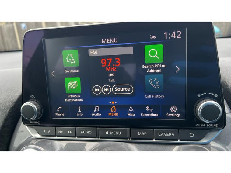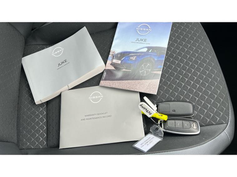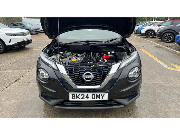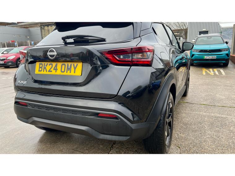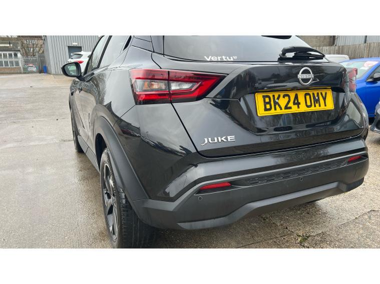 Nissan Juke 1.0 DiG-T 114 N-Connecta 5dr DCT Petrol Hatchback, , The 2024 Nissan Juke 1.0 DiG-T 114 N-Connecta with the 7-speed DCT automatic is a compact but practical hatchback-crossover that strikes a balance of everyday usability, efficiency and style. Powered by a 999 cc turbocharged three-cylinder petrol engine producing around 114 PS (112 bhp) and 200 Nm torque, it offers a 0-62 mph time of roughly 11.8 seconds and a top speed of 112 mph adequate for town commuting and motorway cruising alike. The Juke uses moderately little fuel for its class, with WLTP-rated combined efficiency around 4647 mpg, and CO₂, emissions in the region of 137138 g/km. Inside, the N-Connecta trim brings a decent level of kit, including an infotainment touchscreen with smartphone integration, a comfortable cabin with 5 seats and a 422 litre boot giving it more practicality than a typical supermini.