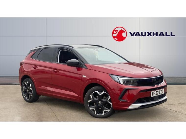 Vauxhall Grandland 1.2 Turbo Ultimate 5dr Auto Petrol Hatchback, , The Vauxhall Grandland 1.2 Turbo Ultimate Auto delivers a smooth, confident, and refined driving experience. Its turbocharged 1.2-litre petrol engine provides strong, efficient performance, while the automatic gearbox ensures seamless acceleration and effortless cruising. Balanced handling and a comfortable suspension setup make the Grandland equally composed on city streets or long-distance drives, offering both reassurance and driving pleasure. Inside, the Ultimate trim elevates the experience with a premium, technology-rich cabin. High-quality materials, supportive seating, and a clean, modern design create a refined and relaxing atmosphere. Advanced connectivity and driver assistance features enhance safety and convenience, while the spacious interior and clever storage make it an ideal family SUV that combines practicality with luxury. Externally, the Grandland Ultimate stands out with its bold SUV styling and sophisticated presence. Sharp lines, distinctive detailing, and the striking front grille give it a modern, confident look. Blending comfort, innovation, and everyday usability, the Vauxhall Grandland 1.2 Turbo Ultimate Auto is a stylish and capable SUV designed to make every journey effortless and enjoyable.