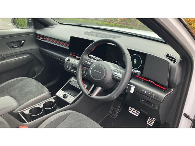 Hyundai KONA 1.6T 138 N Line S 5dr DCT Petrol Hatchback, , This car looks absolutely beautiful. With the N Line S specification, you get clean sporty lines, the alloy wheels are two tone with a geometric pattern that perfectly sit against the crisp white finish to the paint. This car is pre registered, you get the current 75 registration but with a huge saving on the new cost. With warranty running into 2030, you have it all with this Kona! Buy your vehicle in complete confidence with us. Our experienced sales team would be happy to send you a personalised video, so you can take a tour of the vehicle from the comfort of your own home. We can also organise a test drive at your convenience. If you require further information regarding this vehicle please don't hesitate to contact us, we would be more than happy to assist.