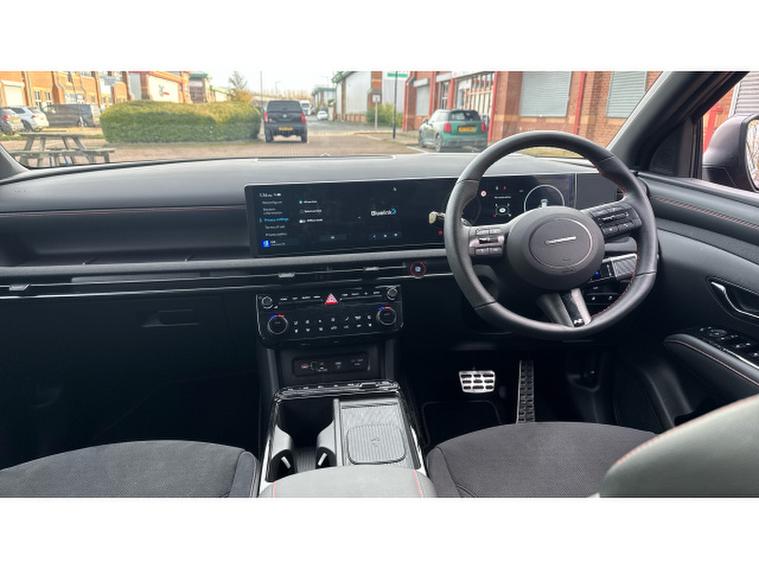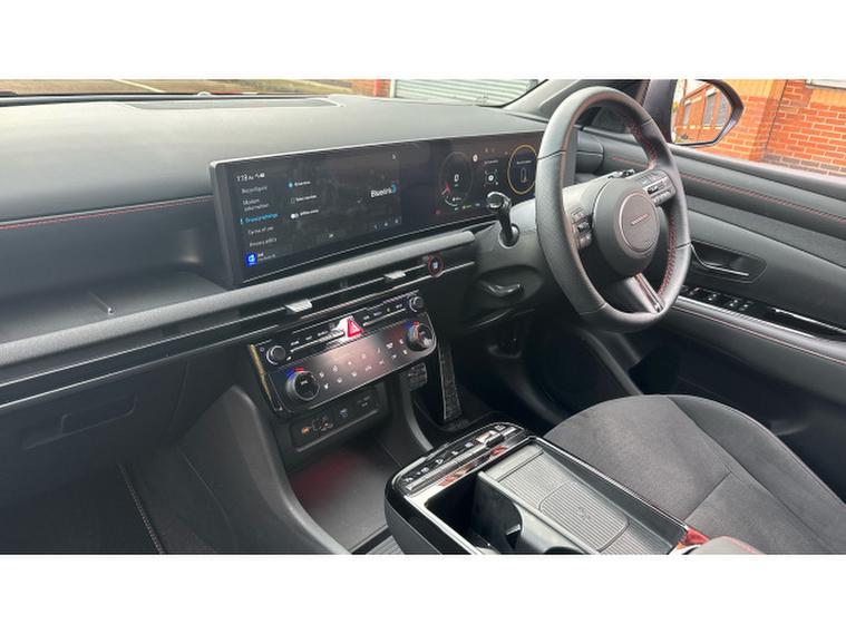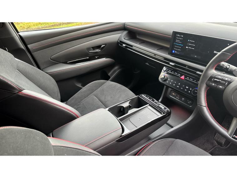 Inside, the Tucson N Line S impresses with its sporty interior design, high-quality materials and advanced technology. Heated and cooled seats, Apple CarPlay and Android Auto, DAB radio, and Bluetooth connectivity ensure every drive is comfortable and connected, while the sat nav and reversing camera make navigation and parking effortless.