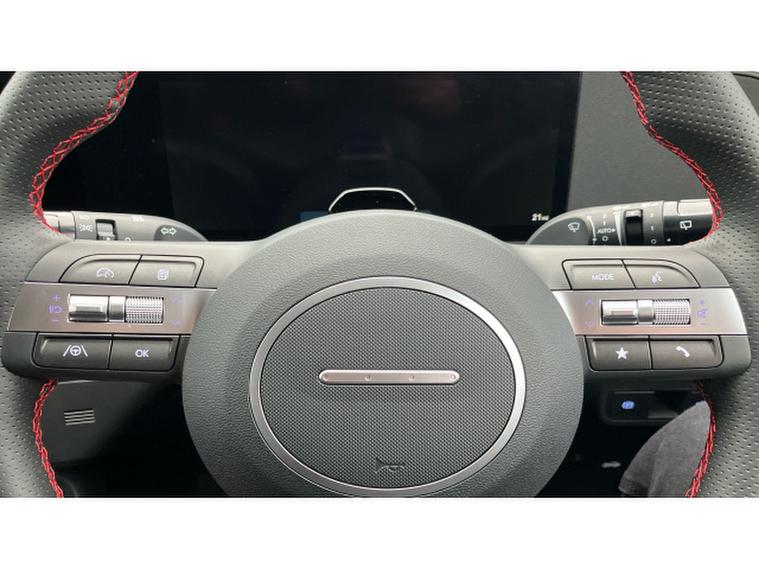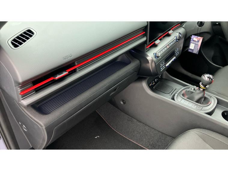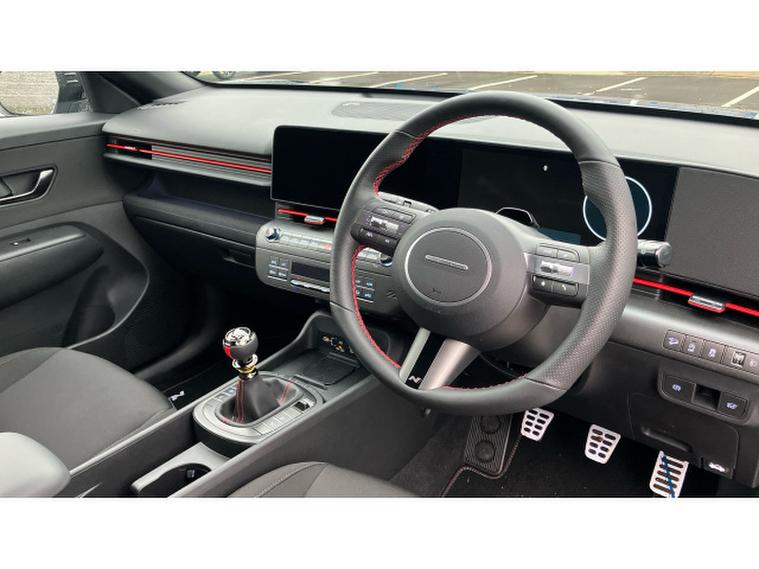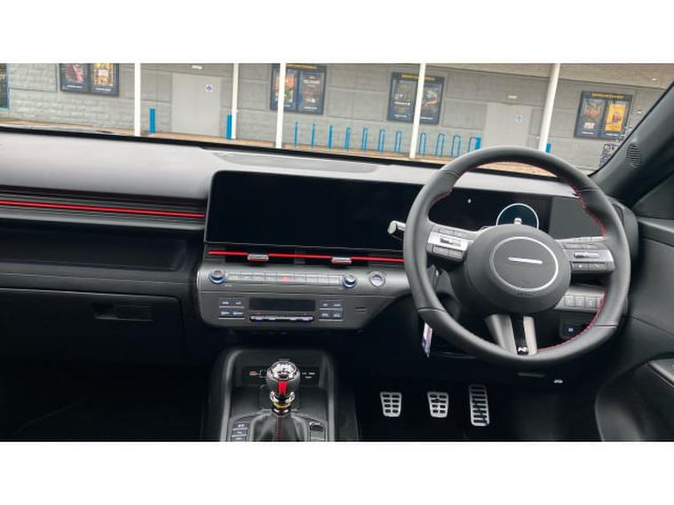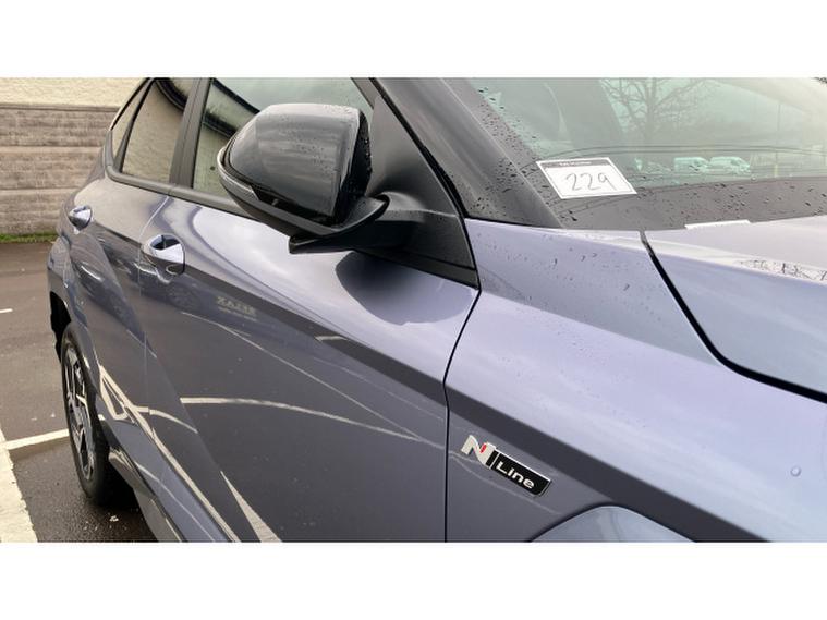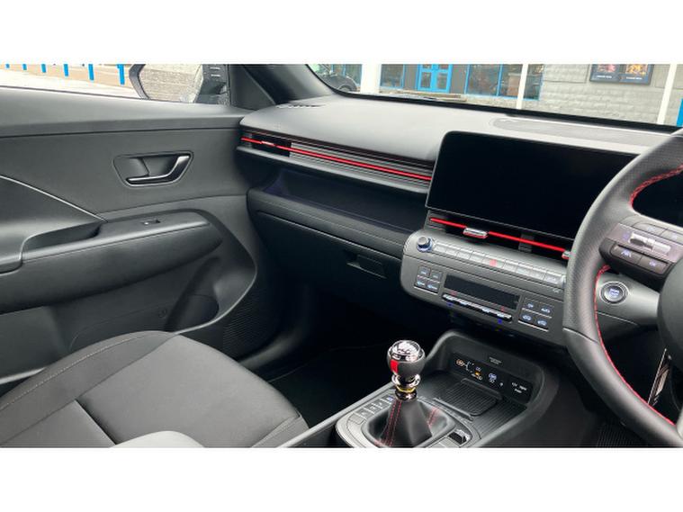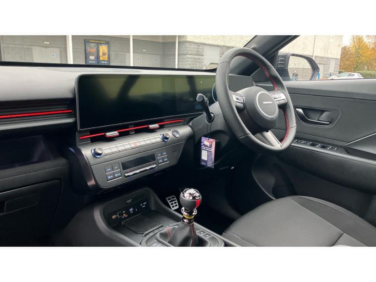 Hyundai KONA 1.6T 138 N Line 5dr Petrol Hatchback, , This 2025 Hyundai KONA T GDi N Line presents an exceptional opportunity with an incredibly low mileage of just 10 miles, making it virtually new. This stylish N Line trim model is powered by an efficient 1.6 litre petrol engine, meeting Euro 6 emission standards. Inside, you'll appreciate the comfort and convenience of a leather wrapped steering wheel and gear knob, complemented by a heated steering wheel for those colder mornings. Stay connected effortlessly with Bluetooth connectivity featuring voice recognition, and enjoy the ease of automatic headlights that activate with a dusk sensor. Plus, keep your devices powered up with the integrated wireless phone charging pad.