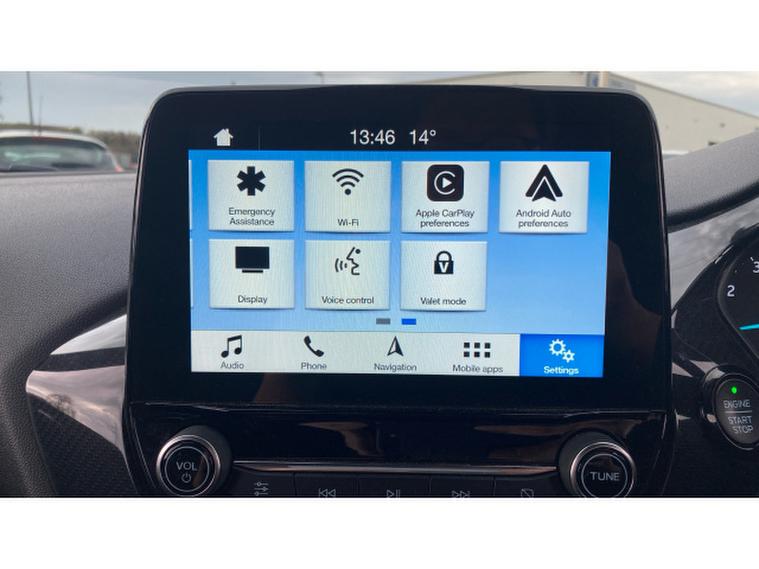 Finished in a sleek and modern ST-Line design, this Fiesta boasts eye-catching ST-Line body styling, rear privacy glass, and 17-inch alloy wheels that perfectly complement its athletic stance. Step inside and youll find a refined, driver-focused cabin packed with premium features. The SYNC 3 infotainment system includes Apple CarPlay and Android Auto for seamless smartphone integration, along with built-in satellite navigation to make every journey effortless. Additional highlights include a lane keeping aid, speed limiter, air conditioning, sport seats, and leather-trimmed steering wheel, all designed to enhance comfort, control, and confidence behind the wheel.