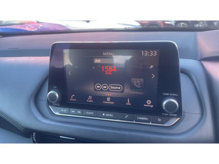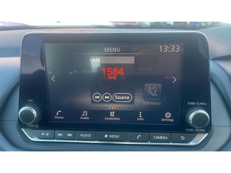 The 8 NissanConnect touchscreen provides Apple CarPlay, Android Auto, Bluetooth, DAB radio, and USB connectivity. It also includes a rear-view camera and front and rear parking sensors for easy manoeuvring.