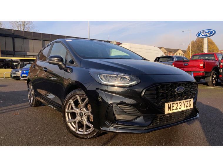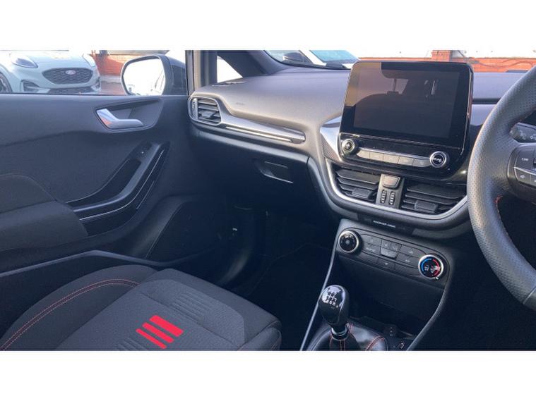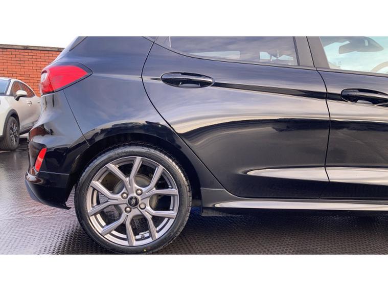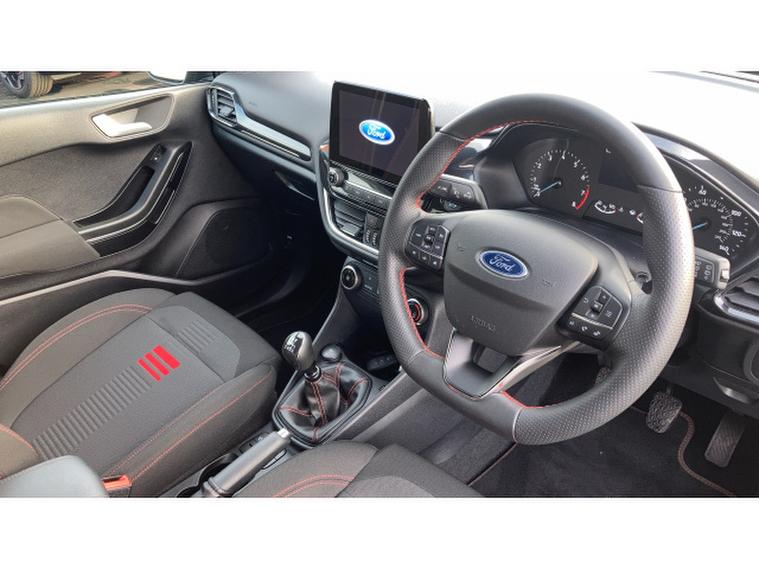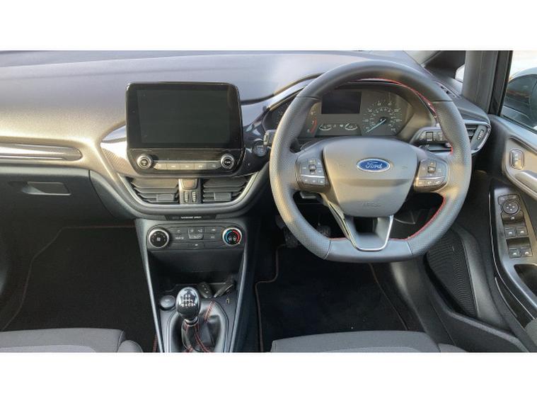Ford Fiesta 1.0 EcoBoost ST-Line 5dr Petrol Hatchback, , Experience dynamic performance and modern design with this exceptional Ford Fiesta 1.0 EcoBoost ST-Line 5dr. Built to impress, the ST-Line blends sporty styling with everyday practicality, offering a driving experience thats as exciting as it is efficient. Powered by Fords award-winning 1.0-litre EcoBoost engine, it delivers lively performance with impressive fuel economy, while the precision-tuned suspension ensures agile handling and a responsive drive. The striking exterior features an ST-Line body kit, bold honeycomb grille, 17-inch alloy wheels, rear spoiler, and sleek LED headlights that highlight its athletic character. Inside, the cabin combines comfort and sportiness with premium materials, red stitching, sports seats, and a flat-bottom steering wheel. The intuitive SYNC 3 infotainment system includes an 8-inch touchscreen, Apple CarPlay, Android Auto, and voice control for seamless connectivity on the go. Safety is prioritised with lane-keeping assist, pre-collision assist, and rear parking sensors. Perfectly blending performance, technology, and practicality, this Fiesta ST-Line is the ideal hatchback for those who demand both excitement and efficiency in every journey.