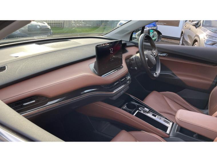 Powered by a 132kW motor paired with a 62kWh battery, the Enyaq iV 60 offers an impressive range of up to 250 miles (WLTP) and smooth, quiet performance that transforms every drive. The ecoSuite interior elevates the experience further, blending luxury and sustainability with beautifully finished leather upholstery crafted using eco-friendly tanning processes. Every journey feels first-class thanks to the floating centre console, 13-inch touchscreen infotainment system, satellite navigation, rear camera, adaptive cruise control, and virtual cockpit display.