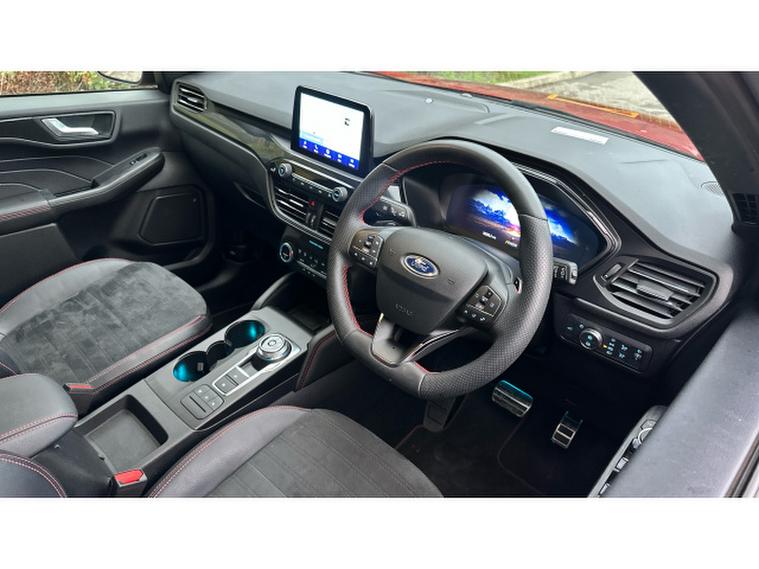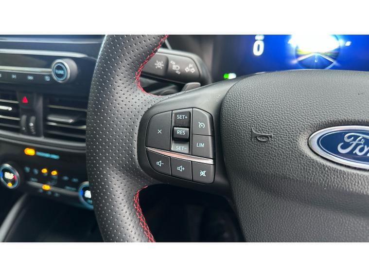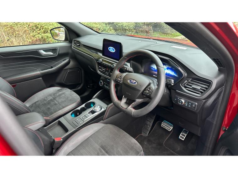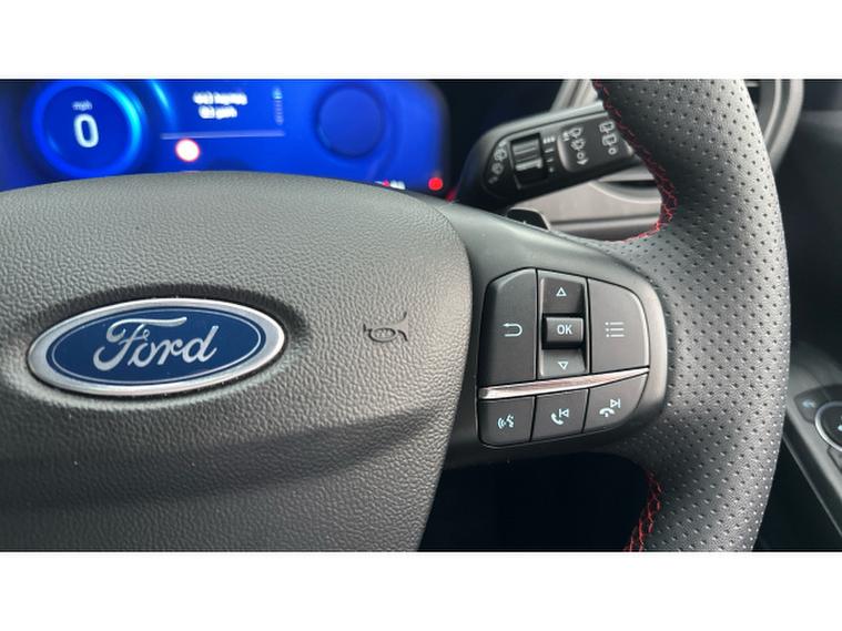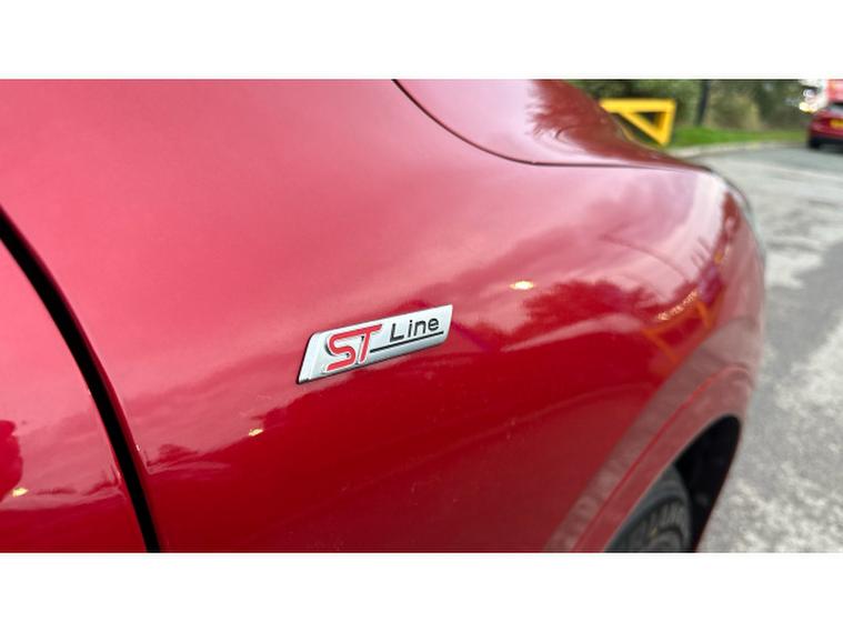 The ST-Line Edition enhances its sporty appeal with bold exterior styling, sleek body lines, and distinctive alloy wheels. Inside, enjoy a premium interior with sports seats, red stitching, and a flat-bottomed steering wheel for a truly dynamic feel.